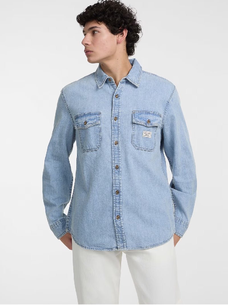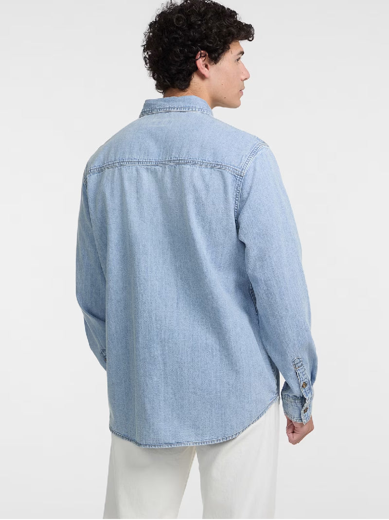 เสื้อเชิ้ตยีนส์ ผลิตจากผ้าฝ้าย 100% ที่ให้สัมผัสนุ่มสบายและระบายอากาศได้ดี มาพร้อมดีไซน์ทรงปกติ แขนยาวและคอกลม ตกแต่งด้วยกระดุมด้านหน้า โดดเด่นด้วยสีอ่อนฟอกซักที่ให้ลุคสบายตาและคลาสสิก เสื้อเชิ้ตตัวนี้สามารถสวมใส่ได้ทุกวัน มิกซ์แอนด์แมทช์ได้ง่ายกับกางเกงหรือกระโปรงหลากหลายสไตล์
