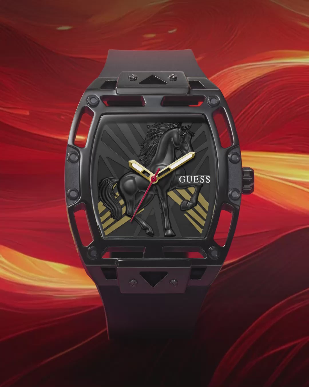 GUESS ออกแบบนาฬิการุ่นพิเศษเรือนนี้เพื่อเป็นการเฉลิมฉลอง Year of the Horse ซึ่งสื่อถึงพลังของความเร็ว ความอิสระ ความแข็งแกร่งและการก้าวไปข้างหน้า ถ่ายทอดความหมายของความสำเร็จ และการเริ่มต้นเพื่อเป็นแรงบันดาลใจให้คุณพร้อมเผชิญทุกความท้าทายด้วยความมั่นใจกับดีไซน์ที่โดดเด่นกับจำนวนสินค้าที่มีจำกัดเพียง 200 เรือนทั่วประเทศ นาฬิการุ่นนี้จึงเหมาะสำหรับหนุ่มหรือสาวสายแฟชั่น ที่มองหาไอเท็มพิเศษที่สะท้อนถึงตัวตนและสไตล์ได้อย่างชัดเจน