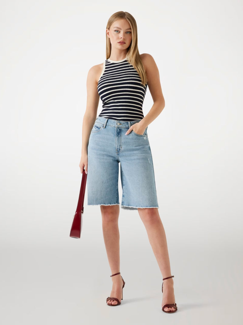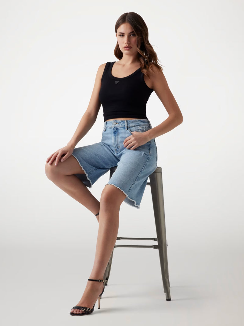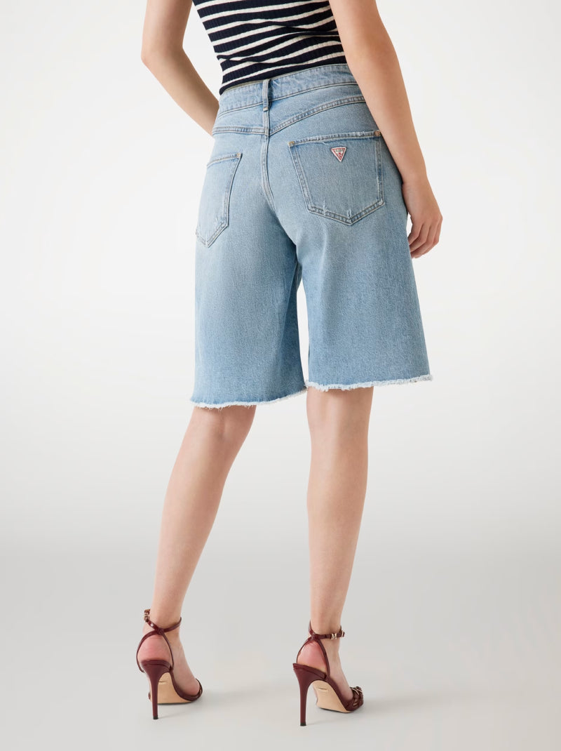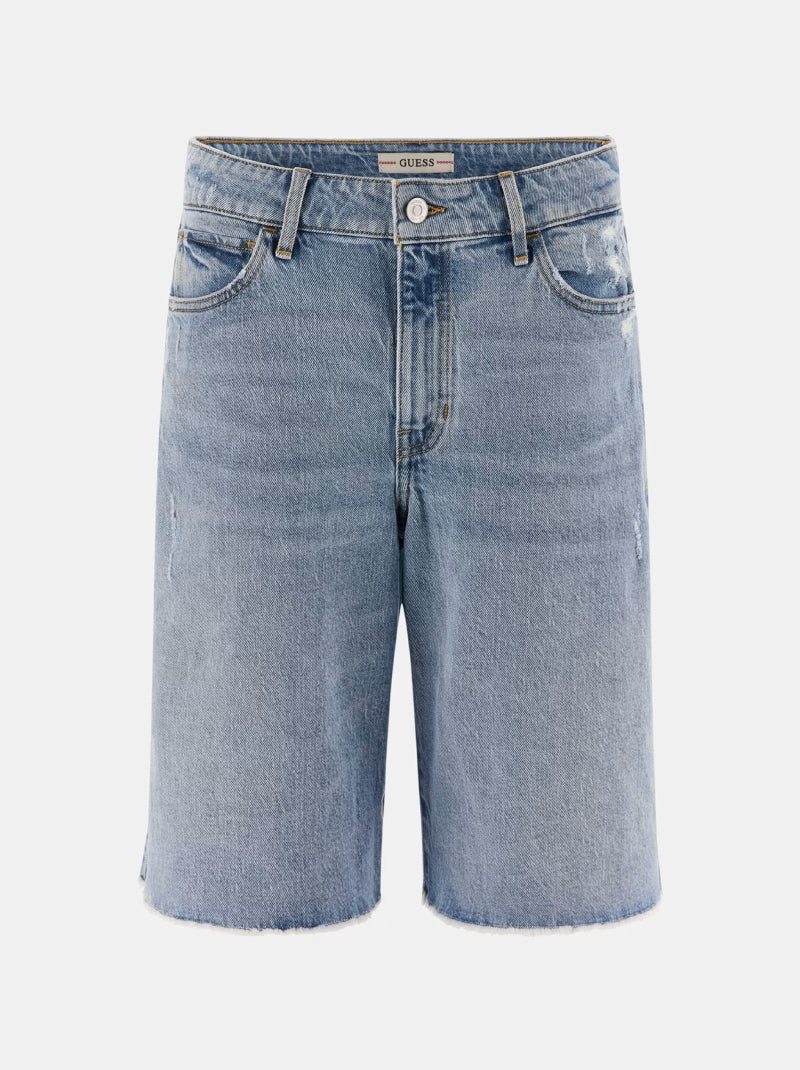 เติมแฟชั่นวินเทจให้ลุคของคุณด้วยกางเกงขาสั้นยีนส์ทรงขากว้างทรงเอวสูงจาก GUESS โดดเด่นด้วยสี Moonstone Blue สดใส ตกแต่งชายขอบครึ่งไม่เย็บ (raw‑hem) เพิ่มความเท่แบบไม่ปรุงแต่ง ตัดเย็บจากผ้ายีนส์ผสม ให้ความนุ่มและยืดหยุ่นเล็กน้อย ผ่อนคลายในทรง knee-length มาพร้อมดีไซน์กระเป๋า 5 จุด และซิปซ่อนด้านหน้า เป็นไอเท็มที่ใช้งานง่ายและเข้ากับเสื้อครอปหรือเสื้อยืดได้หลากหลายลุค