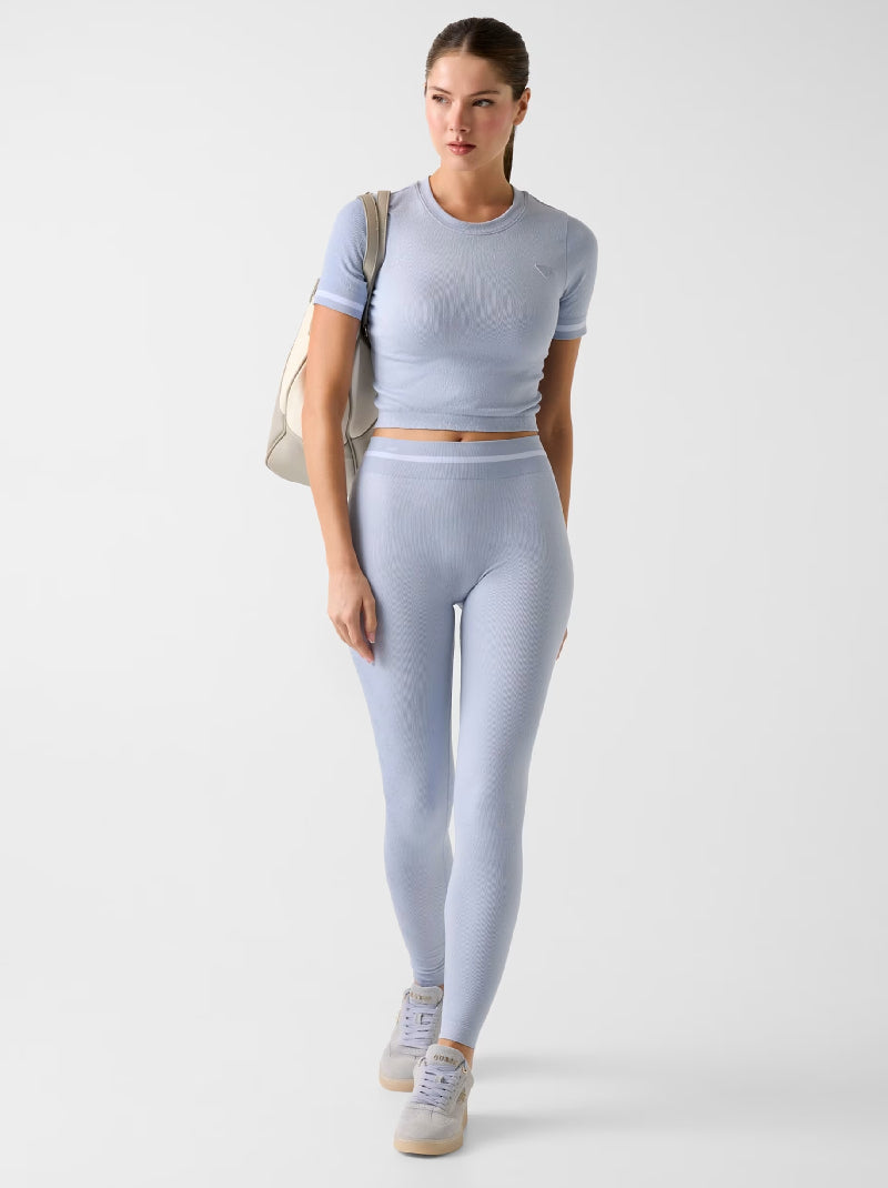 เสื้อท็อปจาก GUESS ในคอลเลกชันแอคทีฟแวร์ที่ผสานความทันสมัยกับการสวมใส่ที่สบายอย่างลงตัว ด้วยเทคนิคผ้าแบบไร้ตะเข็บ (seamless) ที่ช่วยให้สัมผัสนุ่มลื่นและยืดหยุ่นตามการเคลื่อนไหวของร่างกาย การตัดเย็บอย่างพิถีพิถันช่วยให้เสื้อโอบรับสรีระได้อย่างเป็นธรรมชาติ พร้อมรายละเอียดลาย 4G ที่เป็นเอกลักษณ์ของแบรนด์ เติมเสน่ห์ให้ทุกลุคมีความเท่และมีสไตล์ เหมาะสำหรับทั้งการออกกำลังกายหรือการแต่งตัวในวันสบาย ๆ เมื่อจับคู่กับเลกกิ้งหรือกางเกงแอคทีฟจะช่วยยกระดับลุคของคุณให้ดูมีความมั่นใจและโดดเด่นยิ่งขึ้น