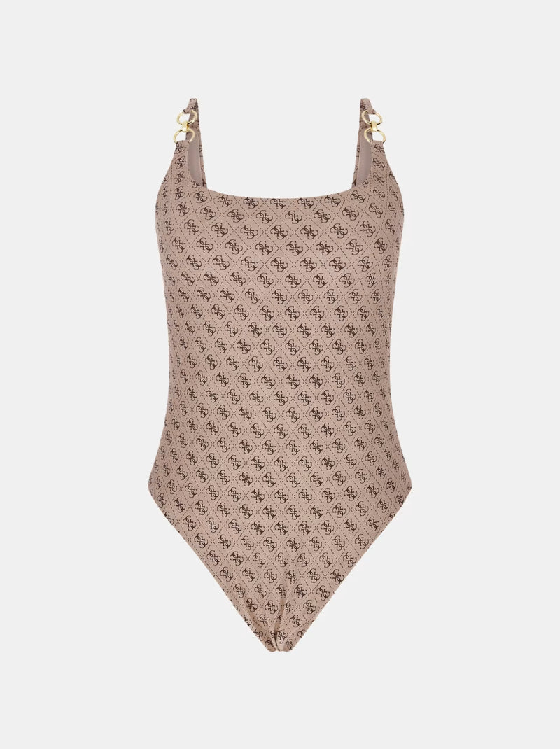 สร้างลุคโดดเด่นริมชายหาดด้วยชุดว่ายน้ำวันพีซ GUESS 4G Logo โทนสีเบจสุดหรู พิมพ์ลายโมโนแกรม 4G ทั่วทั้งชุด ดีไซน์คอกลมและด้านหลังเปิดกว้างเผยความเซ็กซี่แบบมีระดับ ขอบขาสูงช่วยเสริมให้ดูเรียวยาว พร้อมแต่งโลโก้ GUESS แบบมีเอกลักษณ์ เพิ่มความหรูหราให้ลุคว่ายน้ำของคุณ