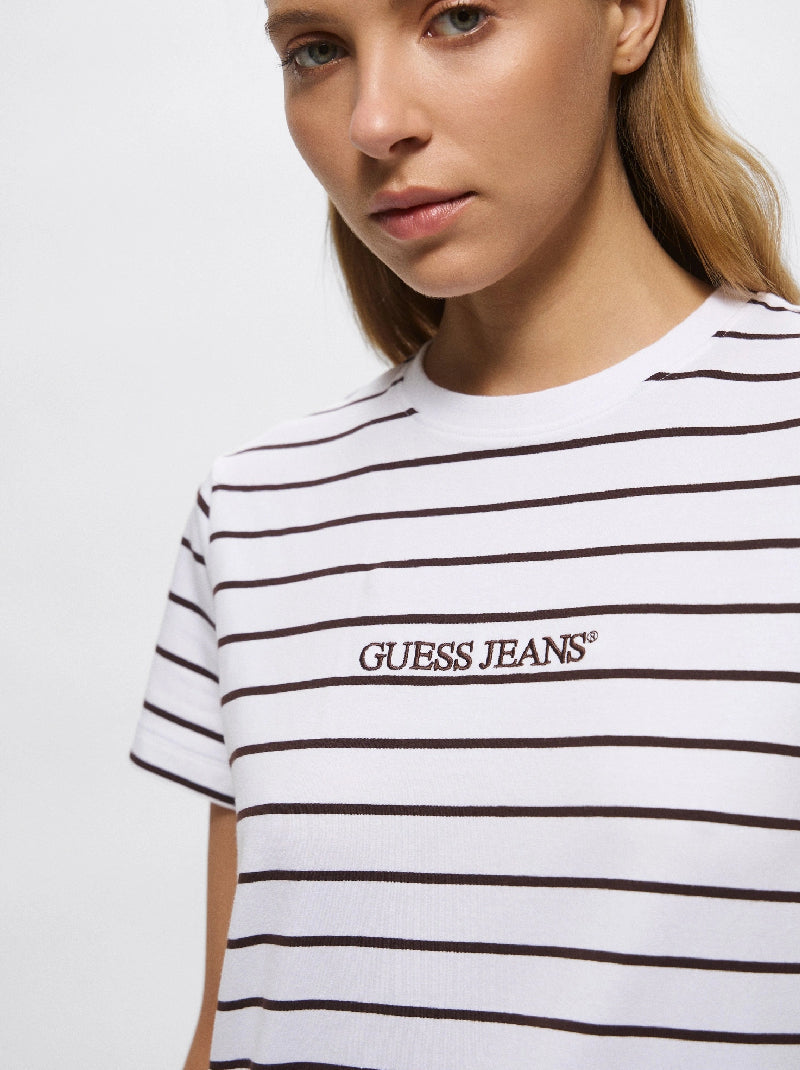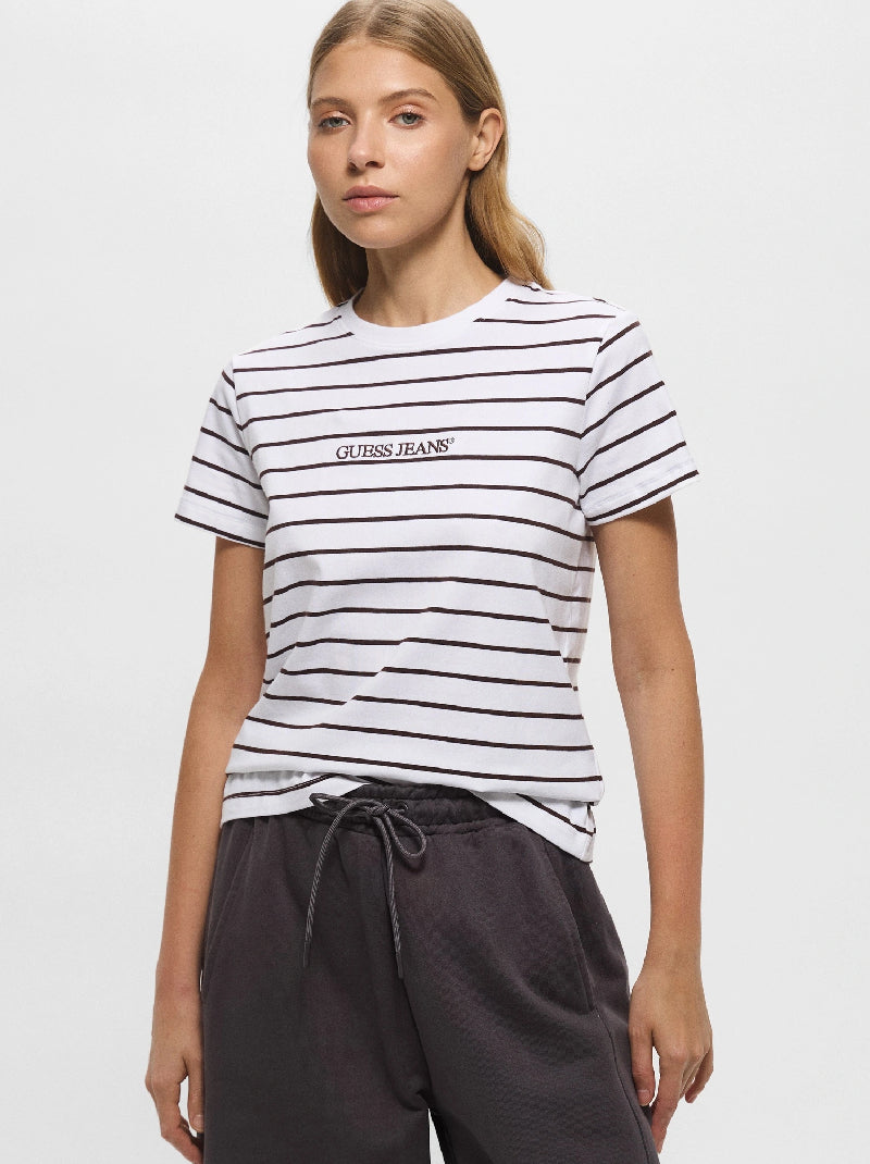 เสื้อยืดผู้หญิง Guess jeans white striped t-shirt