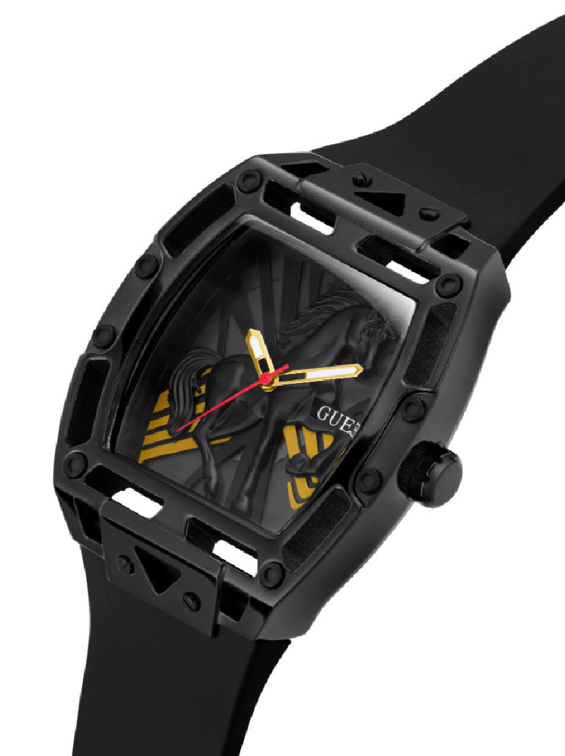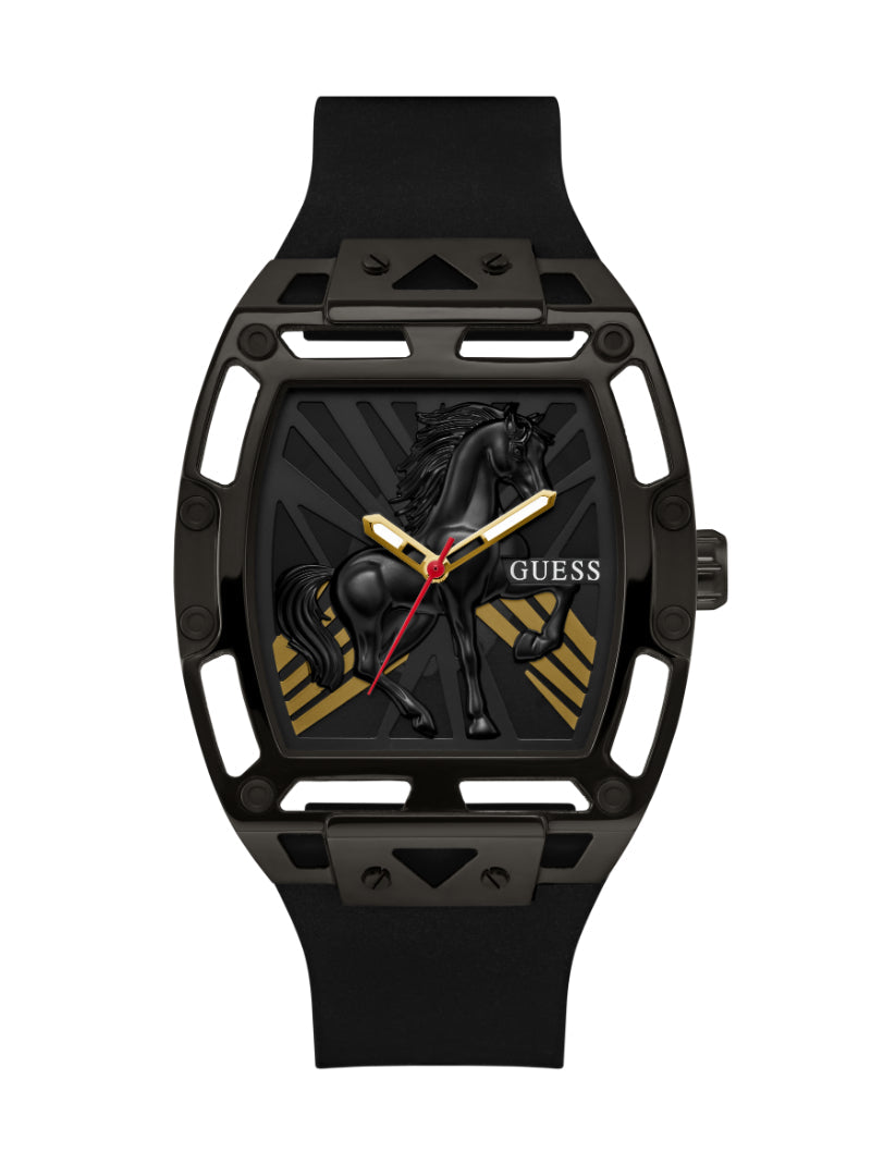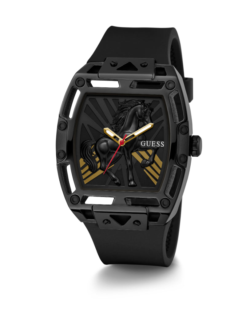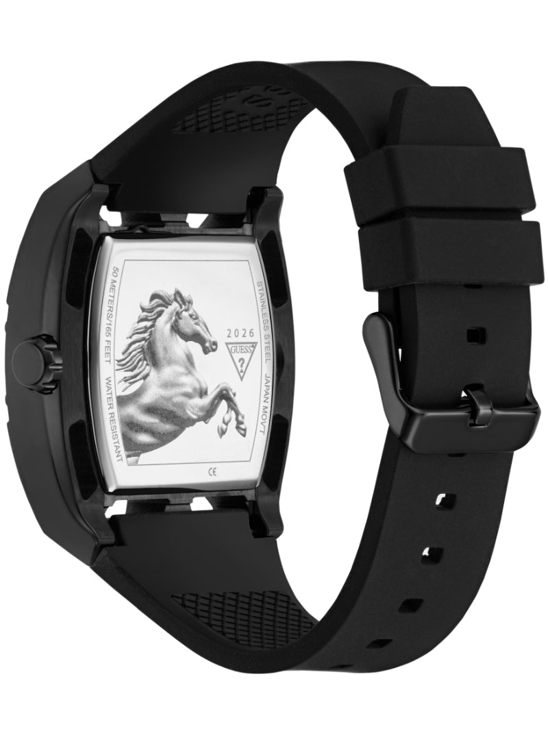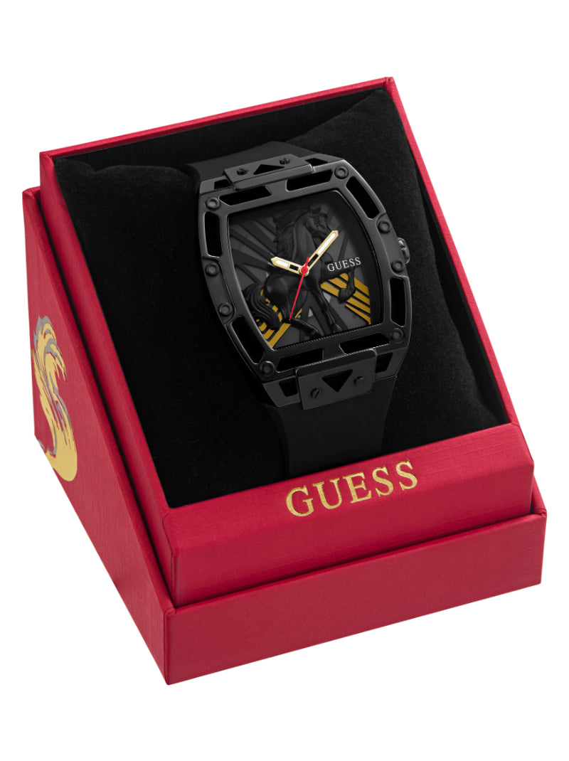นาฬิกาข้อมือผู้ชาย Guess รุ่น Legend สีดำ ถ่ายทอดเสน่ห์แบบโมเดิร์นและเท่ดุดันในดีไซน์ที่เรียบโก้ ตัวเรือนสแตนเลสสีดำ หน้าปัดดำ และสายซิลิโคนสีดำให้ภาพลักษณ์กลมกลืนอย่างมีสไตล์ ขนาดตัวเรือน 44 มม. ใส่แล้วดูแข็งแรงและมั่นใจบนข้อมือ กลไก Analog ทำงานแม่นยำ พร้อมตอบโจทย์การใช้งานในทุกวัน เป็นเรือนเวลาที่ช่วยเสริมบุคลิกให้โดดเด่น สง่างาม และทันสมัยในทุกโอกาส
