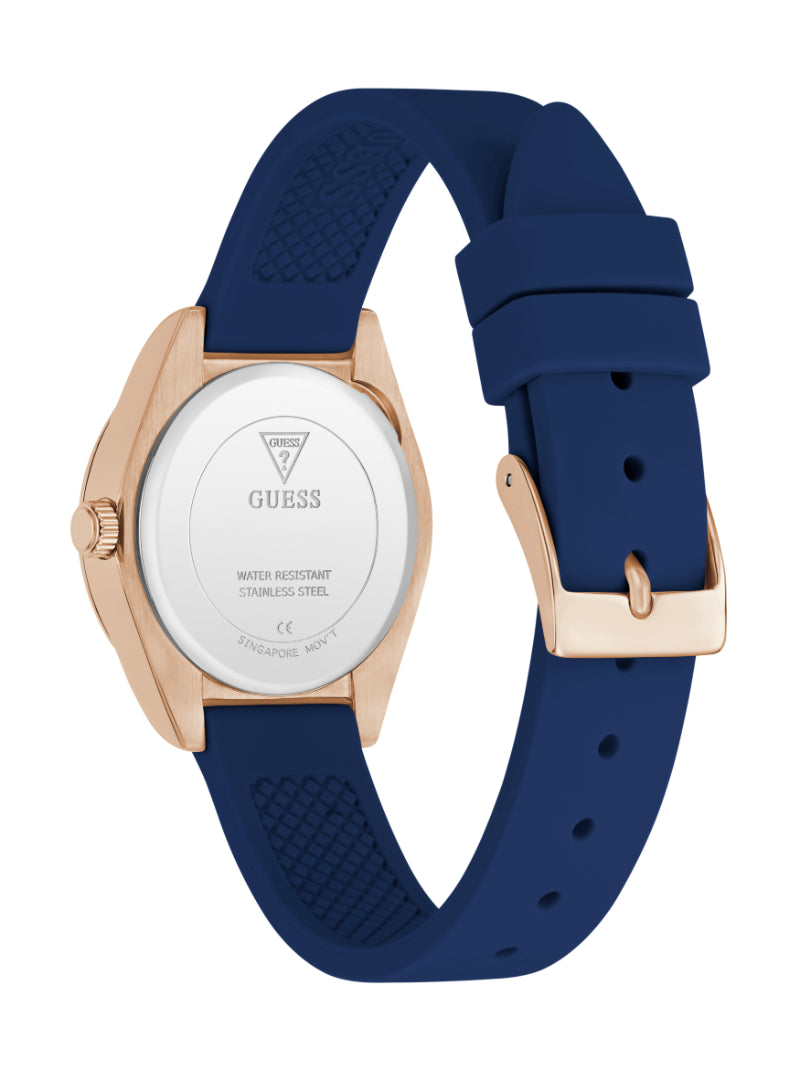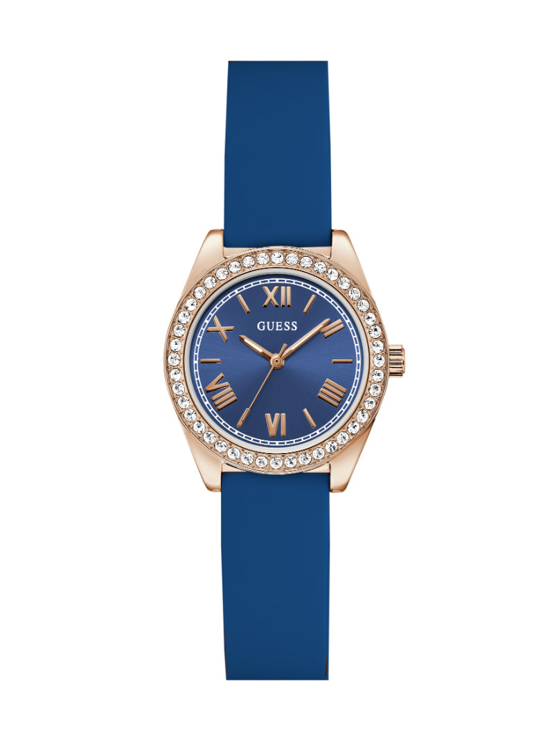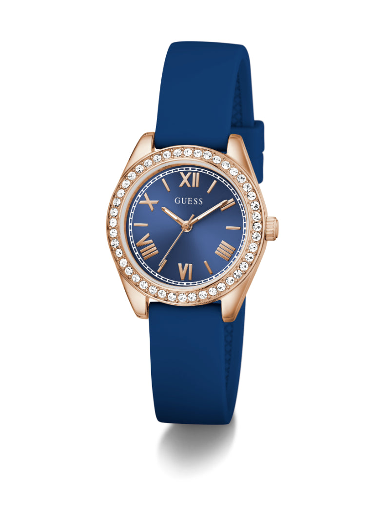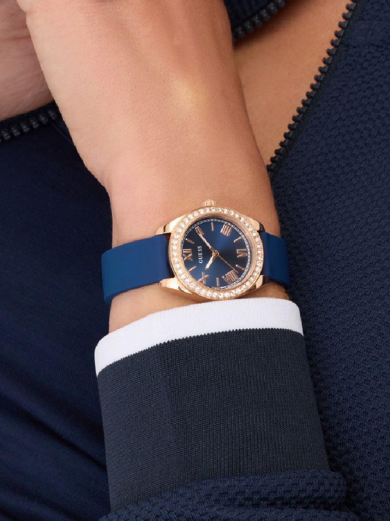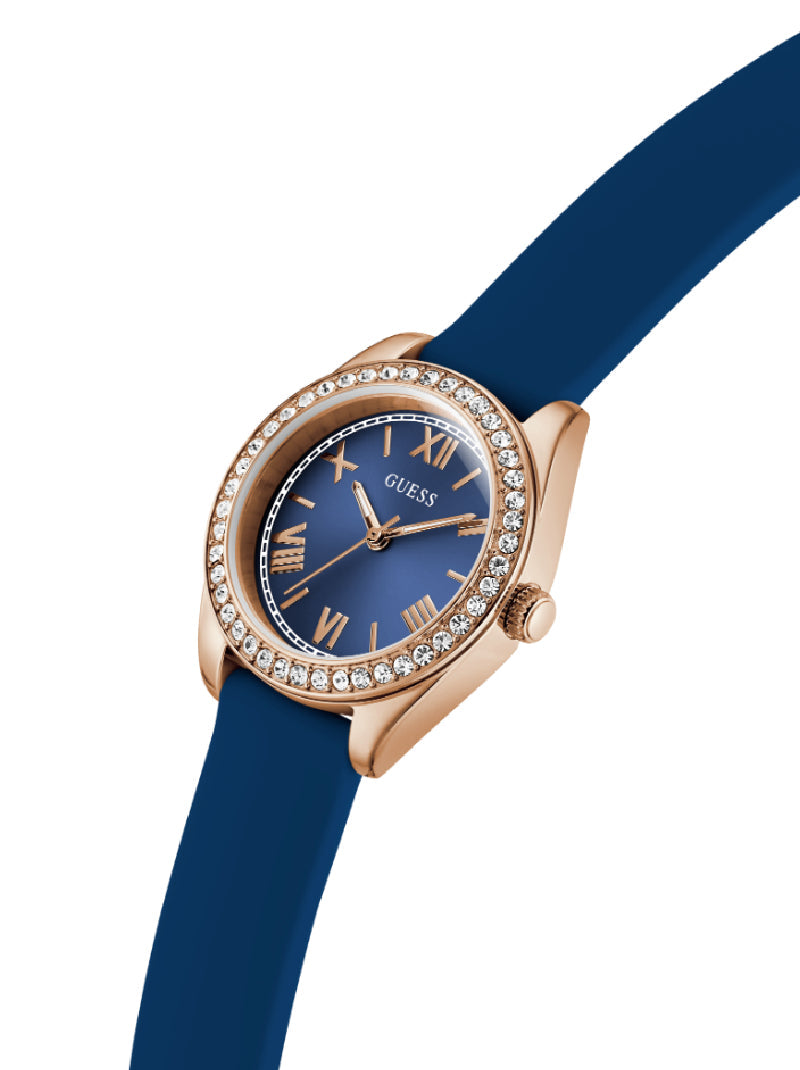 นาฬิกาข้อมือผู้หญิง Guess รุ่น Mini Luna สี Rose Gold เป็นเรือนเวลาที่ผสมผสานความหรูหราและความทันสมัยได้อย่างลงตัว ตัวเรือนสแตนเลสสีโรสโกลด์สะท้อนความหวานละมุน ในขณะที่หน้าปัดและสายซิลิโคนสีน้ำเงินช่วยสร้างคอนทราสต์ที่โดดเด่นและมีเอกลักษณ์ ขนาดตัวเรือน 30 มม. สวมใส่ง่าย ดูสมส่วน และให้ความรู้สึกสบายบนข้อมือ กลไก Analog ทำงานแม่นยำ เหมาะสำหรับสวมใส่ในทุกโอกาส เติมเต็มลุคให้ดูสดใส สุภาพ และมีสไตล์ในแบบผู้หญิงยุคใหม่