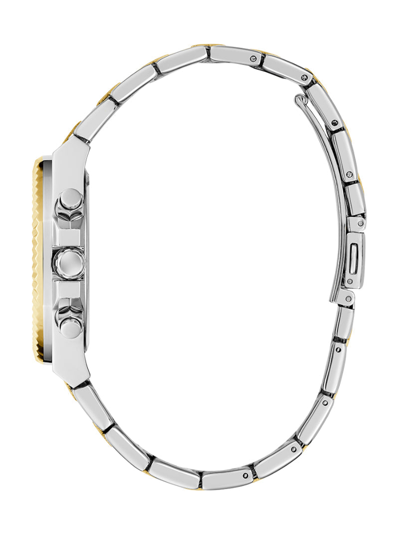 เติมเต็มสไตล์มีระดับไปกับนาฬิกาดีไซน์สุดหรูจากแบรนด์ GUESS รุ่น GW0769L3 ทำงานด้วยระบบเวลาแบบ Analog มาพร้อมกับหน้าปัด Recycled Steel สีทองและสีเงิน 38 mm ปิดท้ายดีไซน์ที่สมบูรณ์แบบด้วยสายนาฬิกา Stainless Steel ที่ดูเข้ากันอย่างไร้ที่ติ