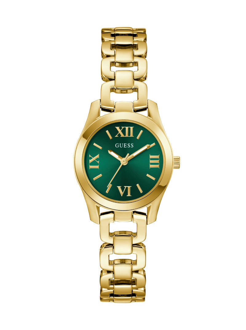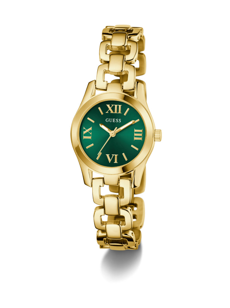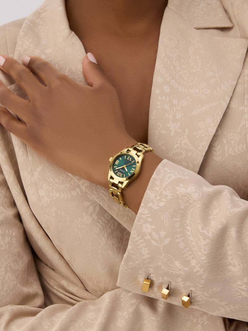 โดดเด่นสะดุดตาด้วยนาฬิกา GUESS โทนทอง หน้าปัดสีเขียวสดใส ตกแต่งด้วยตัวเลขโรมันที่ผสมผสานความคลาสสิกและความทันสมัยอย่างลงตัว สายสแตนเลสโทนทองแบบลิงก์หรูหรา ช่วยเสริมลุคมั่นใจ เหมาะสำหรับผู้หญิงที่รักความแตกต่างและมีสไตล์