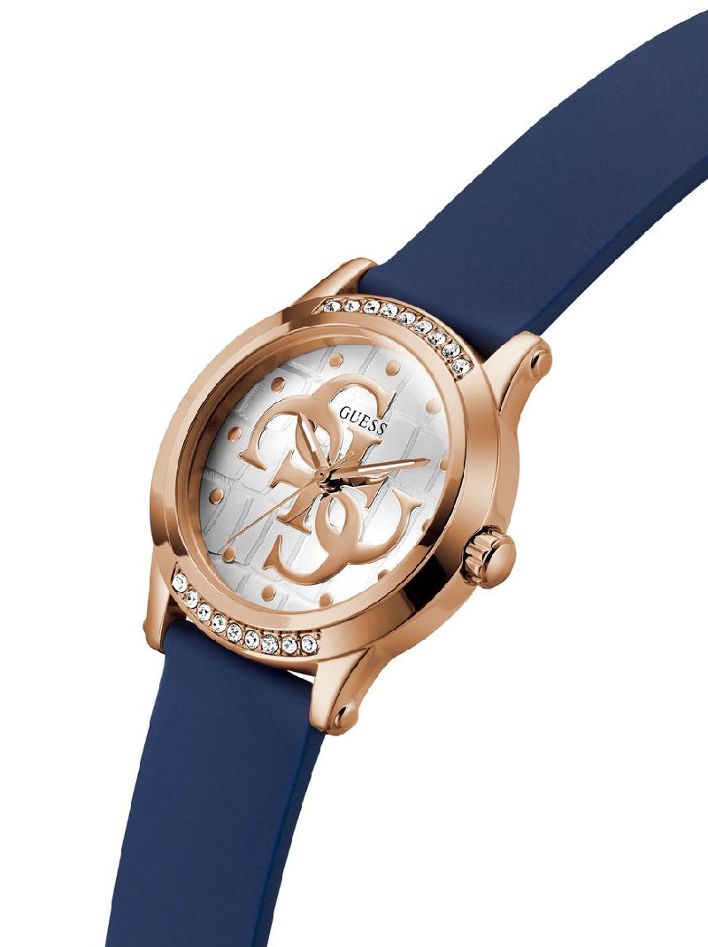 นาฬิกาข้อมือผู้หญิง Guess Ladies Blue Rose Gold Tone Analog Watch