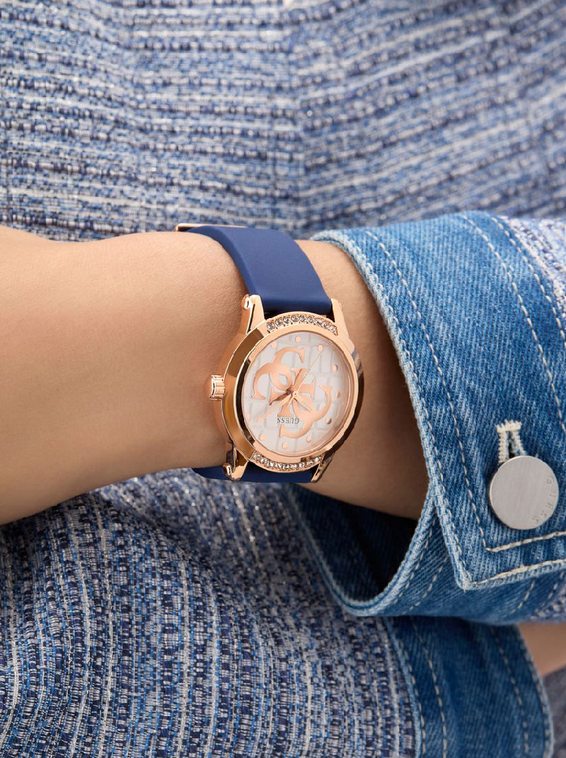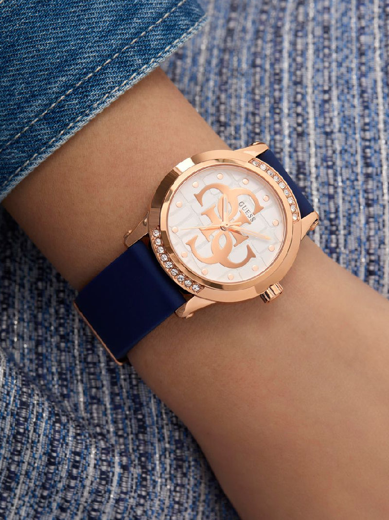 นาฬิกา GUESS Ladies Blue Rose Gold-Tone Analog เป็นนาฬิกาที่หรูหราและโดดเด่น ผสมผสานสไตล์ทันสมัยกับความหรูหราเหนือกาลเวลา โดดเด่นด้วย หน้าปัดสีน้ำเงินสดใส ตัดกับ รายละเอียดสีโรสโกลด์ ที่สร้างคอนทราสต์ที่สวยงามและเพิ่มความสง่างามให้กับนาฬิกา มาพร้อมกับ หน้าปัดอนาล็อกแบบคลาสสิก ที่ช่วยให้ดูเวลาได้ง่าย ผลิตจาก วัสดุคุณภาพสูง เพื่อความทนทานและการตกแต่งที่ประณีต เหมาะสำหรับทั้งโอกาสทางการและลำลอง นาฬิกาเรือนนี้จะช่วยเสริมลุคให้ดูเรียบหรูและมีระดับ