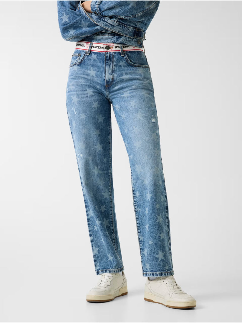 Make a bold streetwear statement with these Baggy Jeans from the Hysteric Glamour collection, blending Y2K-inspired attitude with modern design. Featuring a low-rise waist and a tapered leg silhouette, they create a relaxed yet stylish look that stands out effortlessly. Crafted from premium stretch denim, the fabric offers comfort, flexibility, and durability for all-day wear. Finished with a classic five-pocket construction and button fastening, these jeans embody timeless appeal while remaining versatile for styling—from casual outfits to standout streetwear looks.
