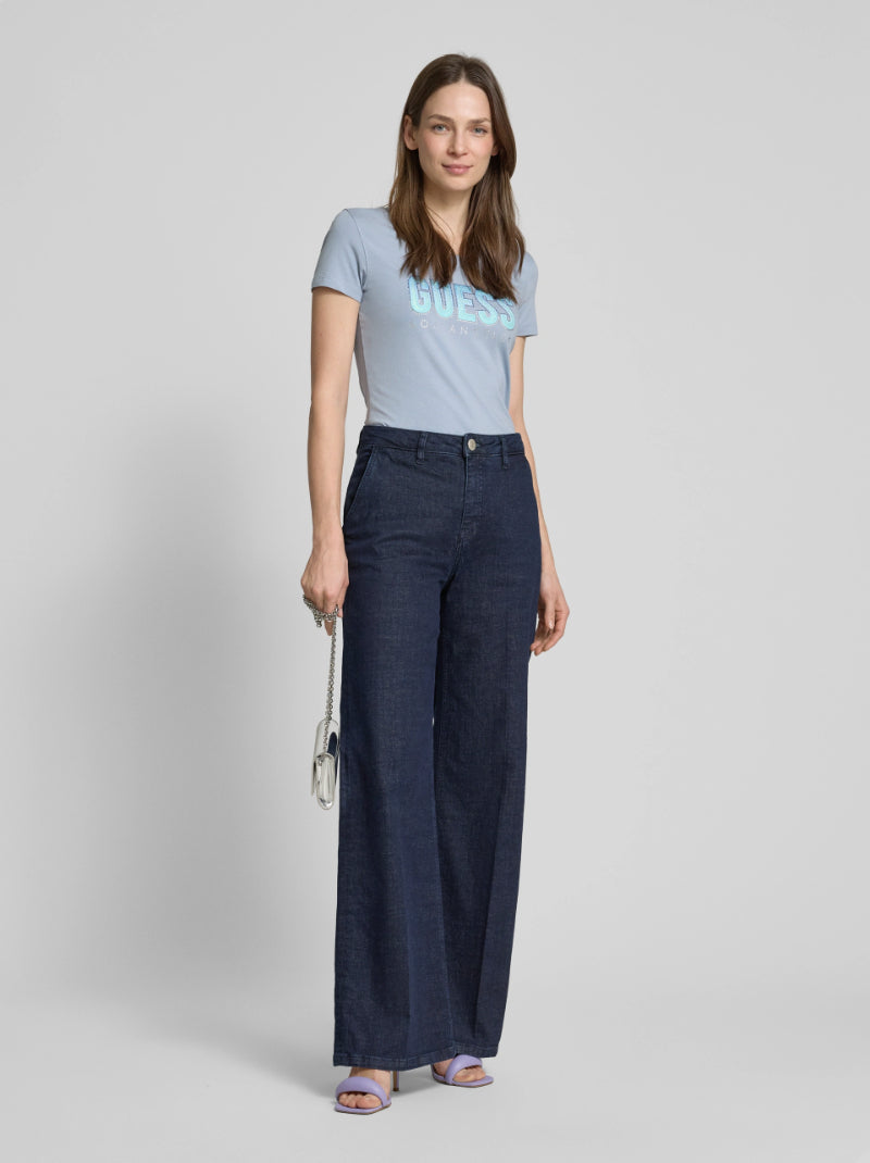 Make a bold style statement with the Gradient Logo T-Shirt. Designed with a soft cotton fabric and a modern crew neck cut, this tee features a vibrant gradient-effect GUESS logo that adds a pop of color and energy to your casual look. Pair it with jeans or shorts for an effortless streetwear vibe.