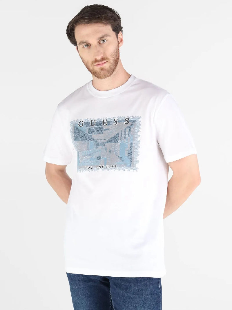 The Playera Guess Graphic Tee is a timeless casual piece featuring a round neckline and short sleeves for everyday comfort. Highlighted with a bold front graphic design and the iconic Guess logo detail, this T-shirt brings effortless style to any look. Crafted from 100% cotton, it ensures softness and breathability throughout the day.