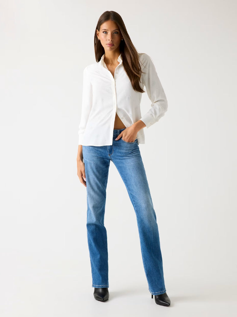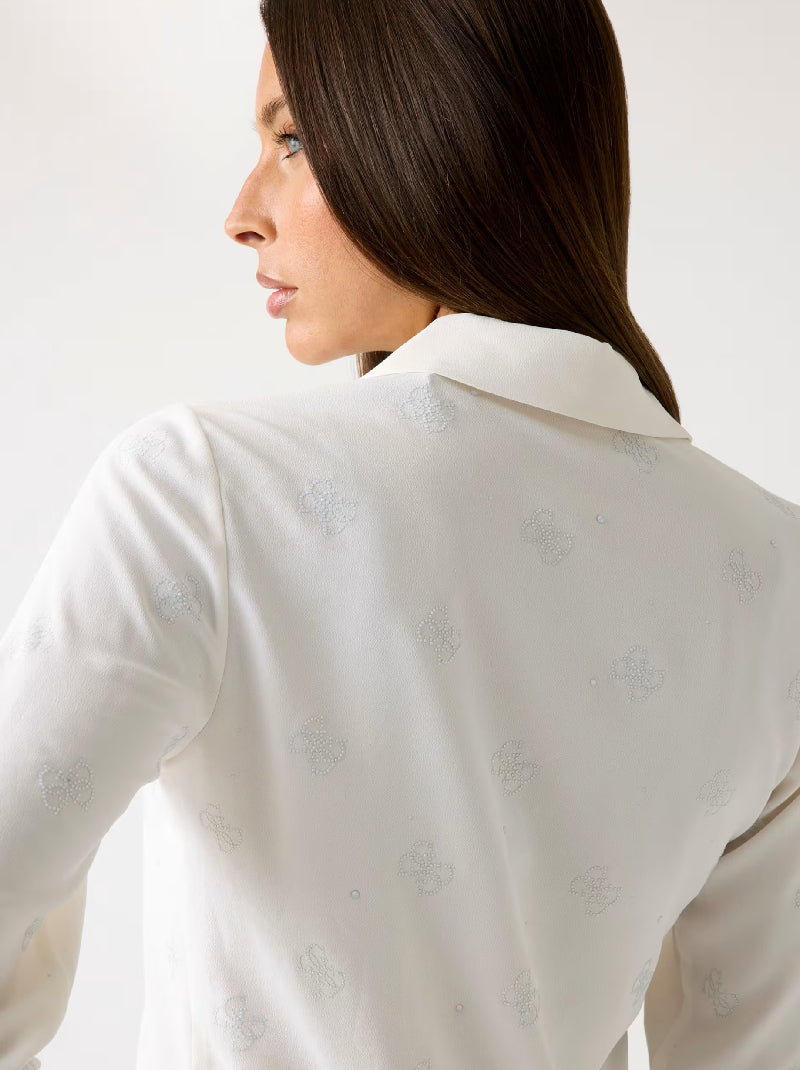 The “4 Logo Shirt” by GUESS brings together modernity and classic tailoring in one piece, featuring a crisp shirt collar, long sleeves, and a full‑scale beaded “4G” logo motif that adds unmistakable character. Perfect for elevating your office look or transitioning into an elegant evening event.