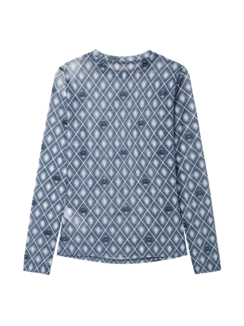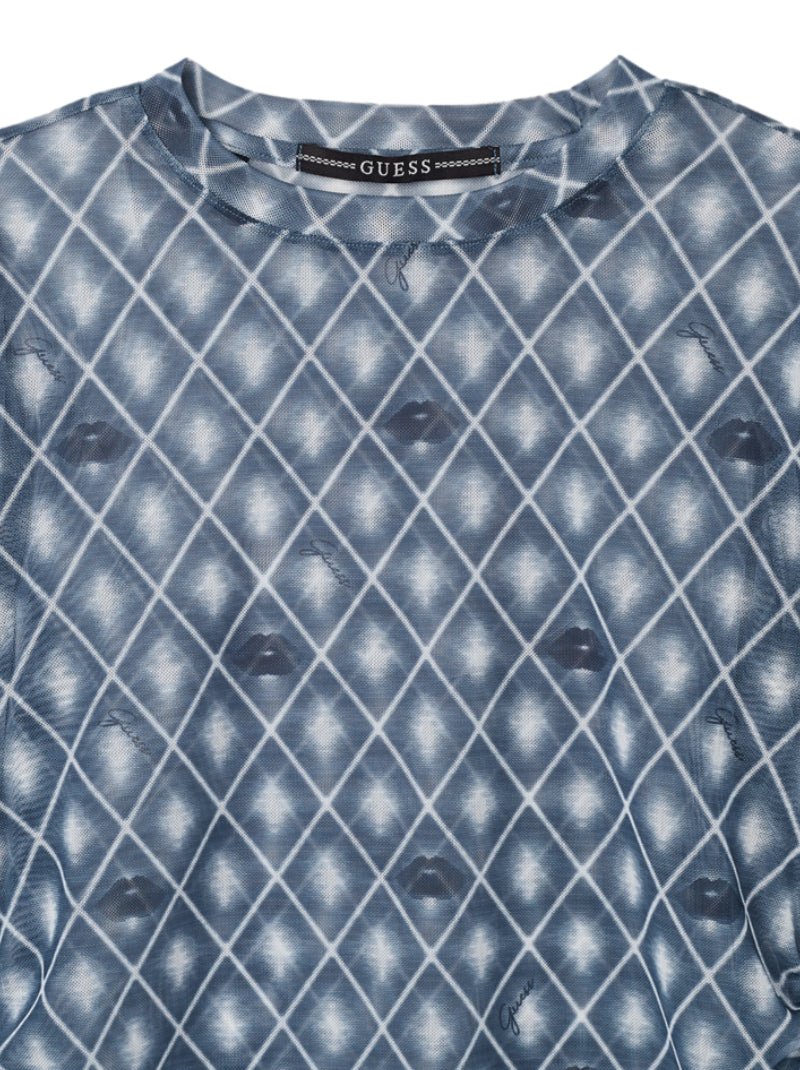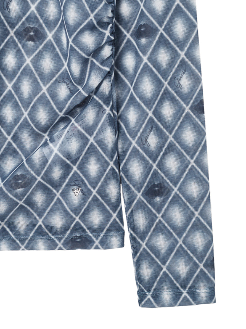 This long-sleeve top from GUESS showcases a striking all-over diamond grid print that blends modern style with a bold, artistic edge. Made from soft, stretchy fabric, it provides a flattering slim fit that hugs the body while ensuring comfort and freedom of movement. The crew neckline and fitted sleeves enhance its sleek silhouette, making it a versatile piece that can be dressed up or down. Perfect for wearing on its own to make a statement, or layered under jackets and vests for added dimension, this top is a stylish choice for elevating everyday looks.