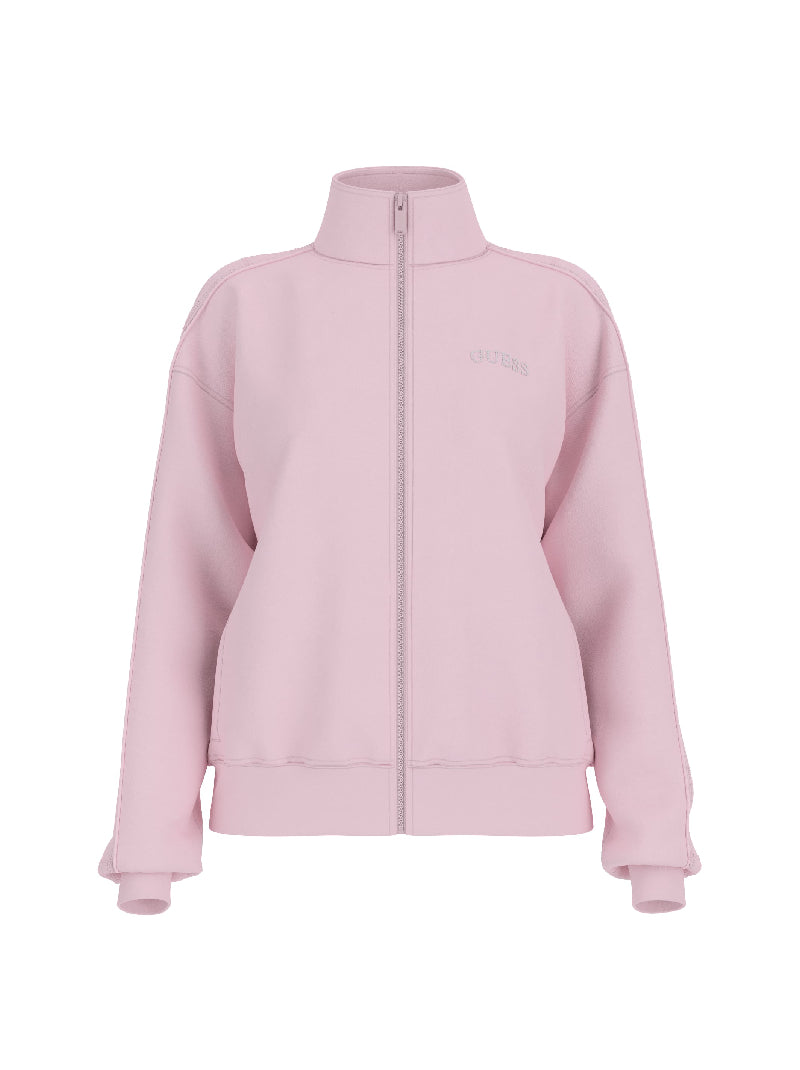 Step into effortless elegance with the GUESS Ec Octavia Full‑Zip Sweatshirt in sleek black — designed in brushed terry knit for a soft touch, it features a high stand collar, full-length zip and long sleeves for comfortable everyday wear. Glimmering rhinestone logo accents at the front and along the sleeves add a subtle sparkle, while the ribbed trim keeps the silhouette polished and poised.