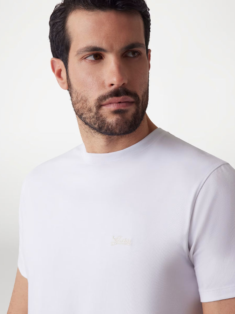 Elevate your casual wardrobe with this slim fit cotton blend t-shirt. Its crew neck and subtle embroidered logo add a touch of refinement while maintaining effortless style. Ideal for weekends or a laid-back day, pair it with your favorite jeans for a polished look.