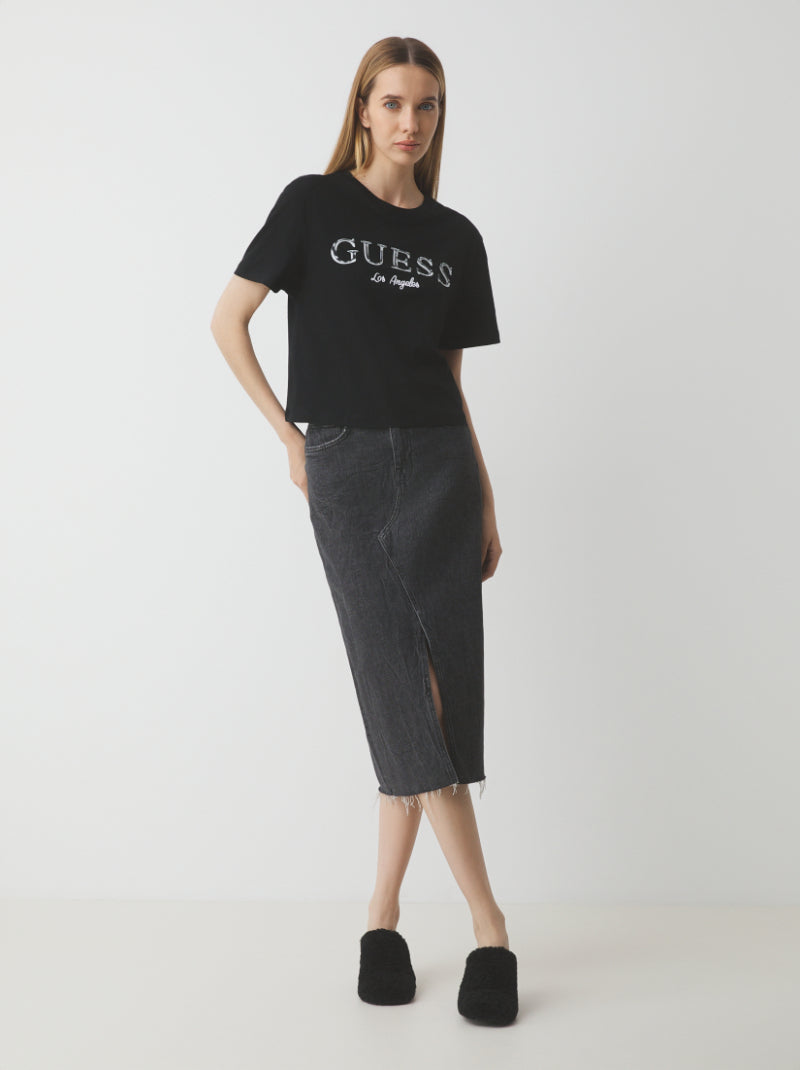 Short-Sleeved Crew Neck T-Shirt – Relaxed Fit with Embossed Front Detail Stay comfortable and stylish in this short-sleeved crew neck T-shirt featuring a relaxed fit for everyday ease. The front showcases a subtle embossed writing detail, adding a modern textured touch to the classic design. Made from soft, breathable fabric, it’s perfect for casual wear or layering.