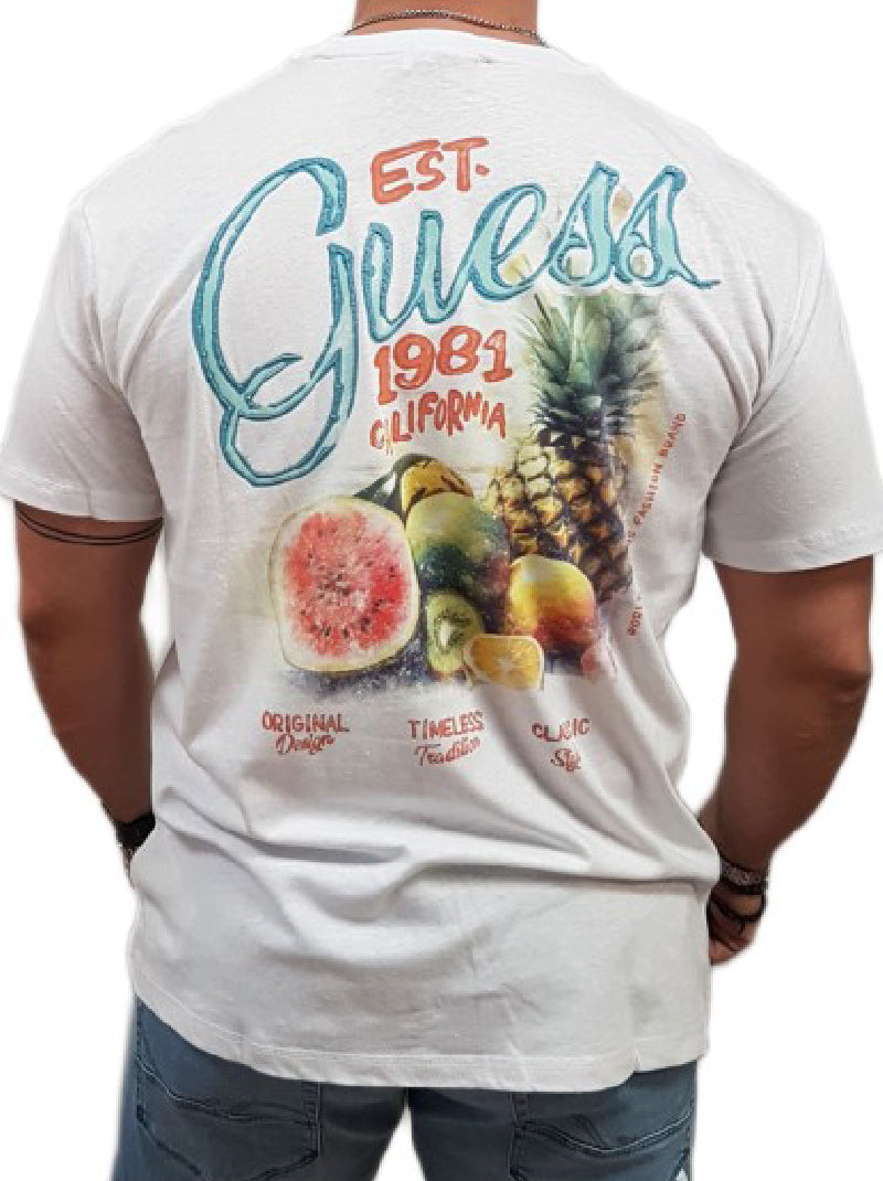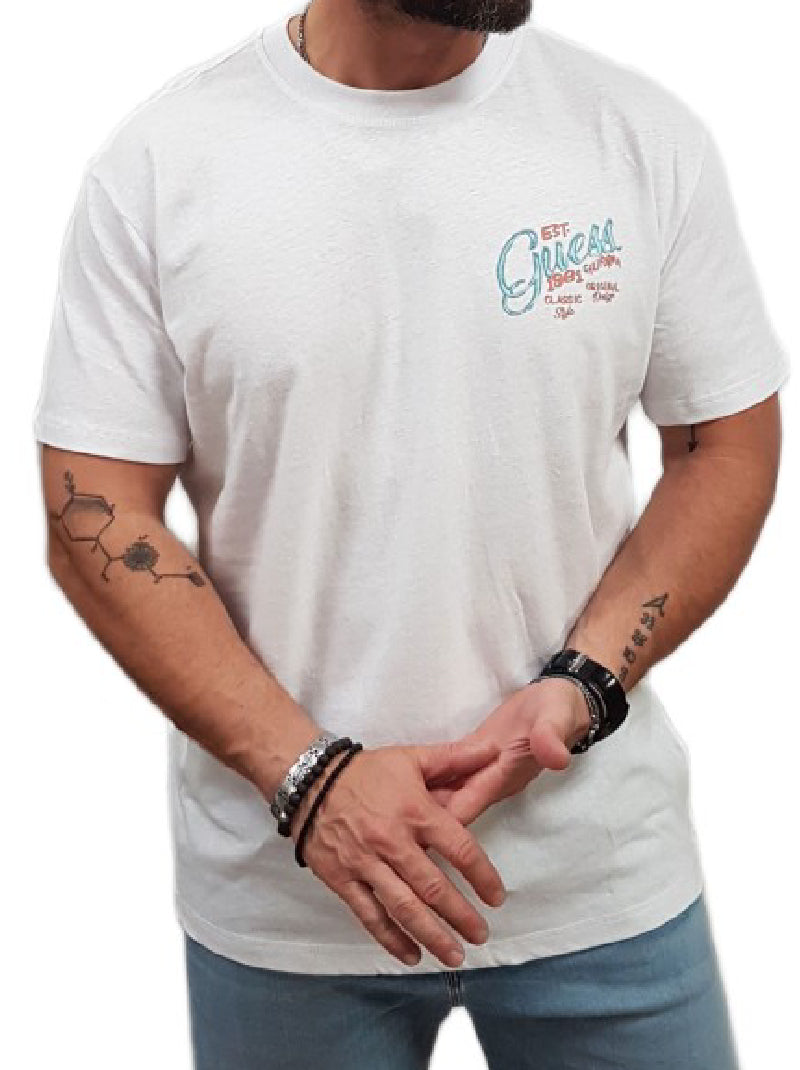 This men's T-shirt by Guess is ideal for casual looks and everyday activities. It comes in a stylish white color that makes it easy to combine with various outfits.