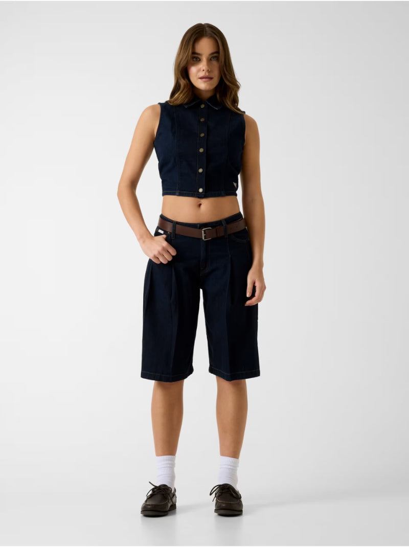 Pleated denim bermuda shorts from GUESS that blend structured tailoring with a modern denim edge. Designed in a relaxed silhouette, they add dimension and style to your look while ensuring everyday comfort. Perfect for creating an effortlessly chic casual outfit.