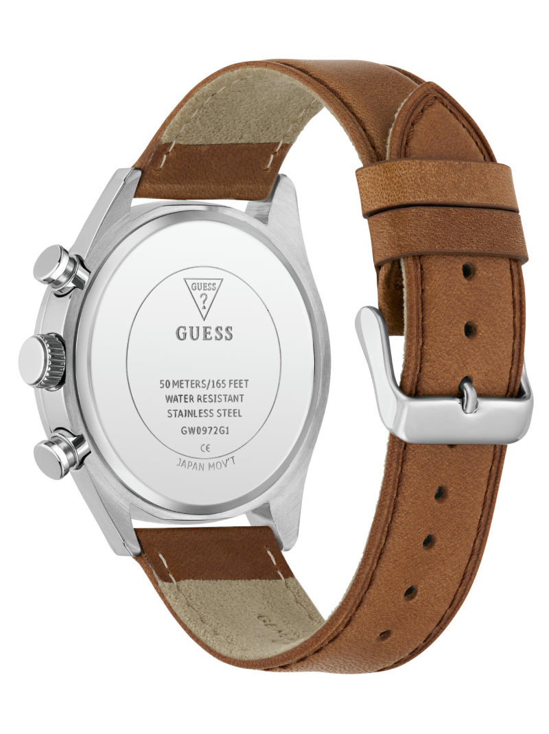 Guess Mens Dawson Brown Silver Tone Multi-Function Watch
