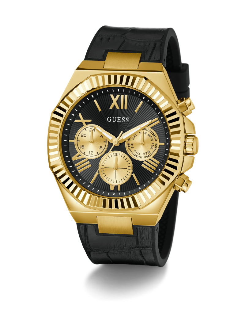 Guess Mens Equity Black Gold Tone Multi-Function Watch