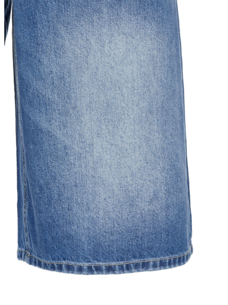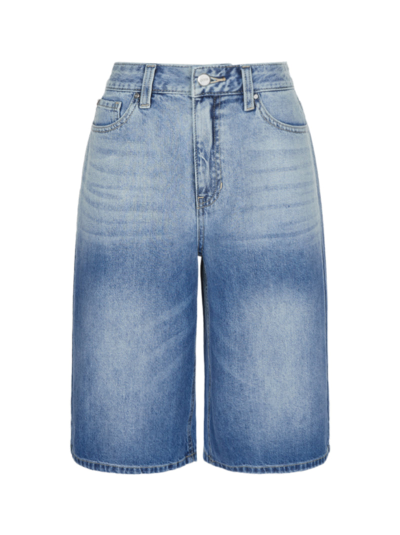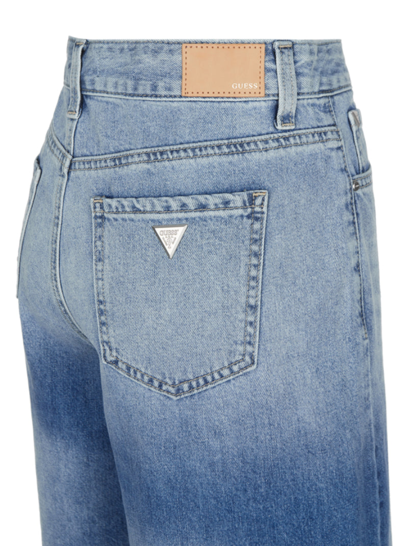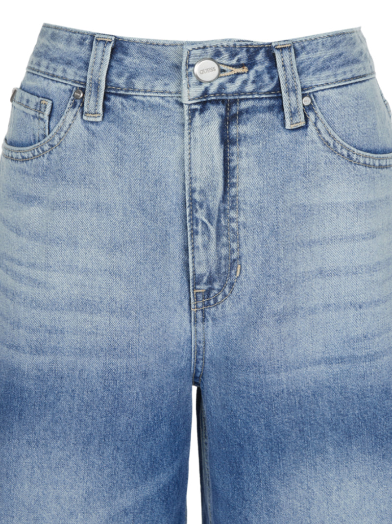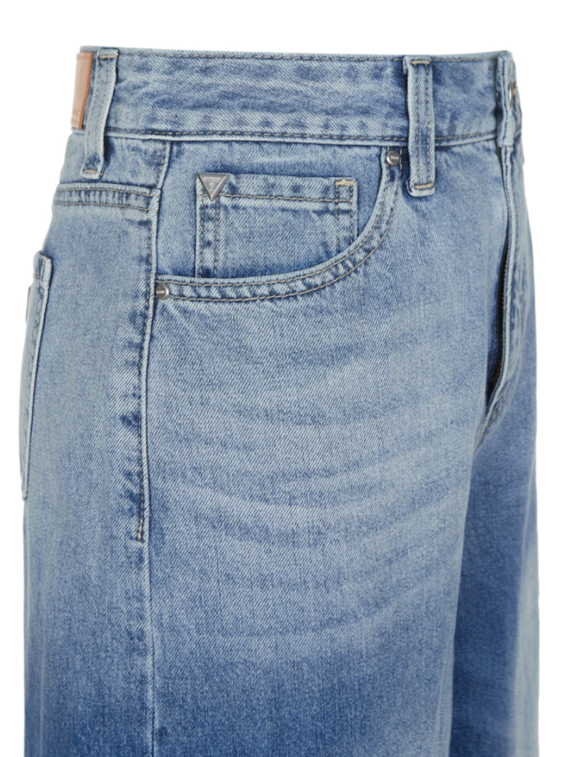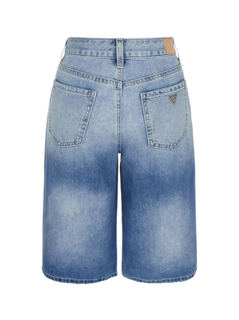 Embrace a bold and relaxed silhouette with these wide-leg Bermuda denim shorts from GUESS. Designed in a light blue wash with subtle fading, they feature a high-rise waist, classic five-pocket styling, and a button-zip closure for a timeless denim look. The loose, knee-length cut offers both comfort and a modern streetwear edge, making them perfect for pairing with cropped tops, tucked-in tees, or layered outerwear. Finished with the signature GUESS logo patch at the back for an authentic touch.