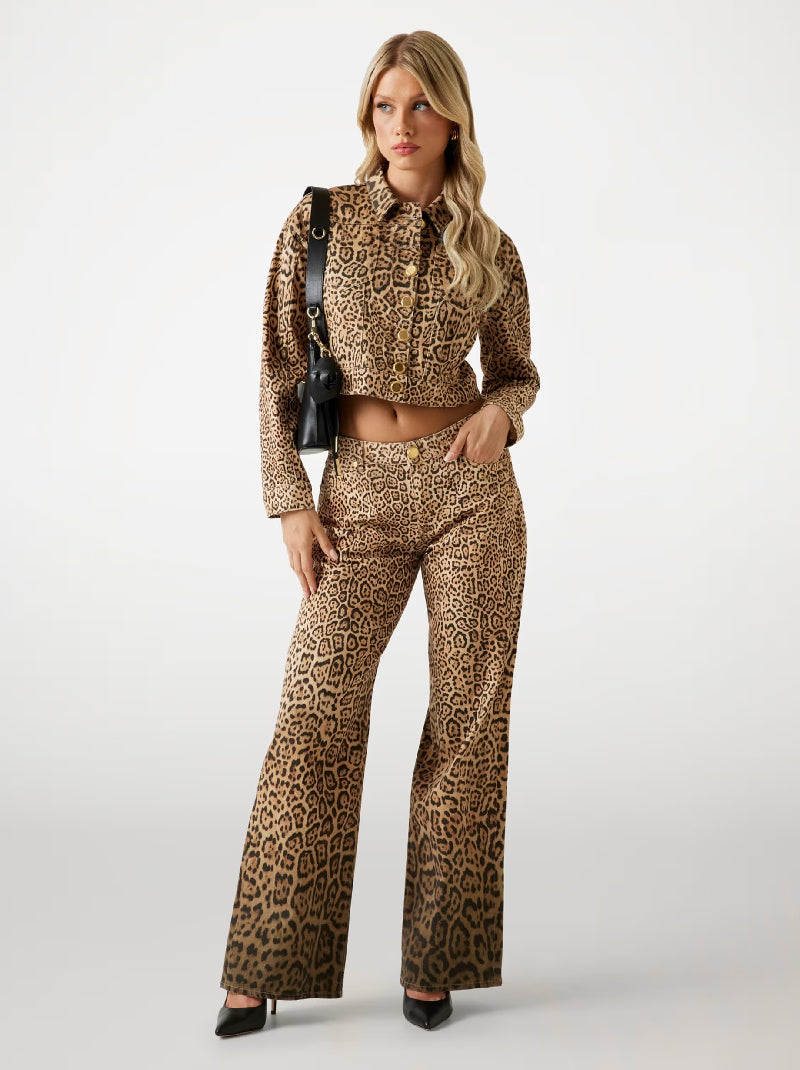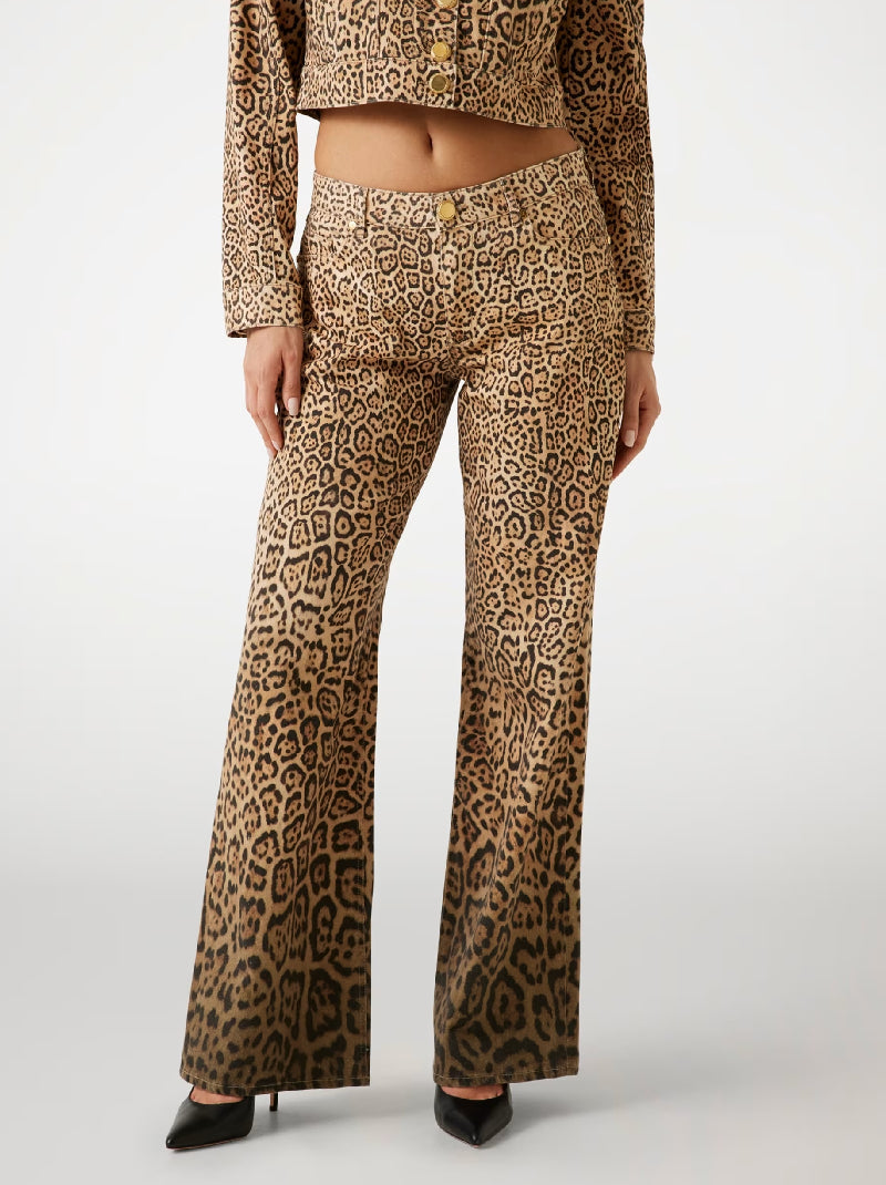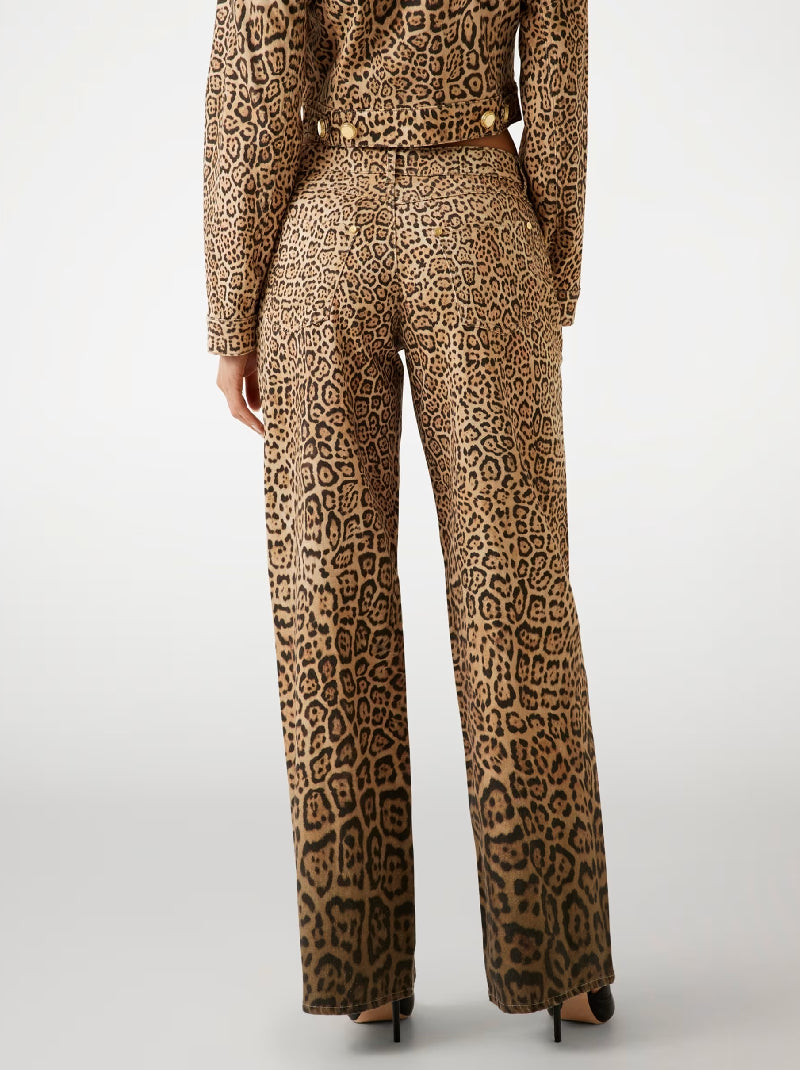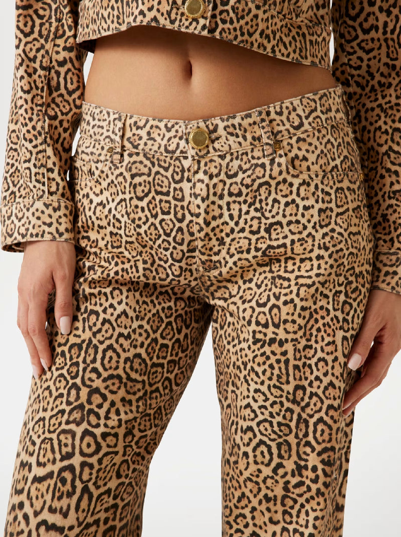 Step into sophistication with these leopard print jeans. The classic mid-rise waist and regular fit offer timeless comfort, while the sleek five-pocket design adds functionality. Crafted from organic cotton twill, ideal for chic city strolls or stylish dinner dates.