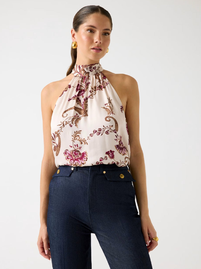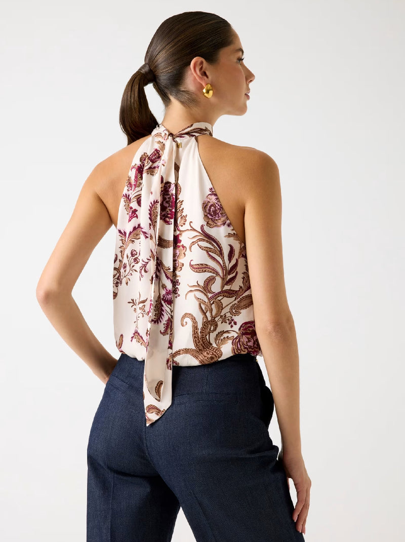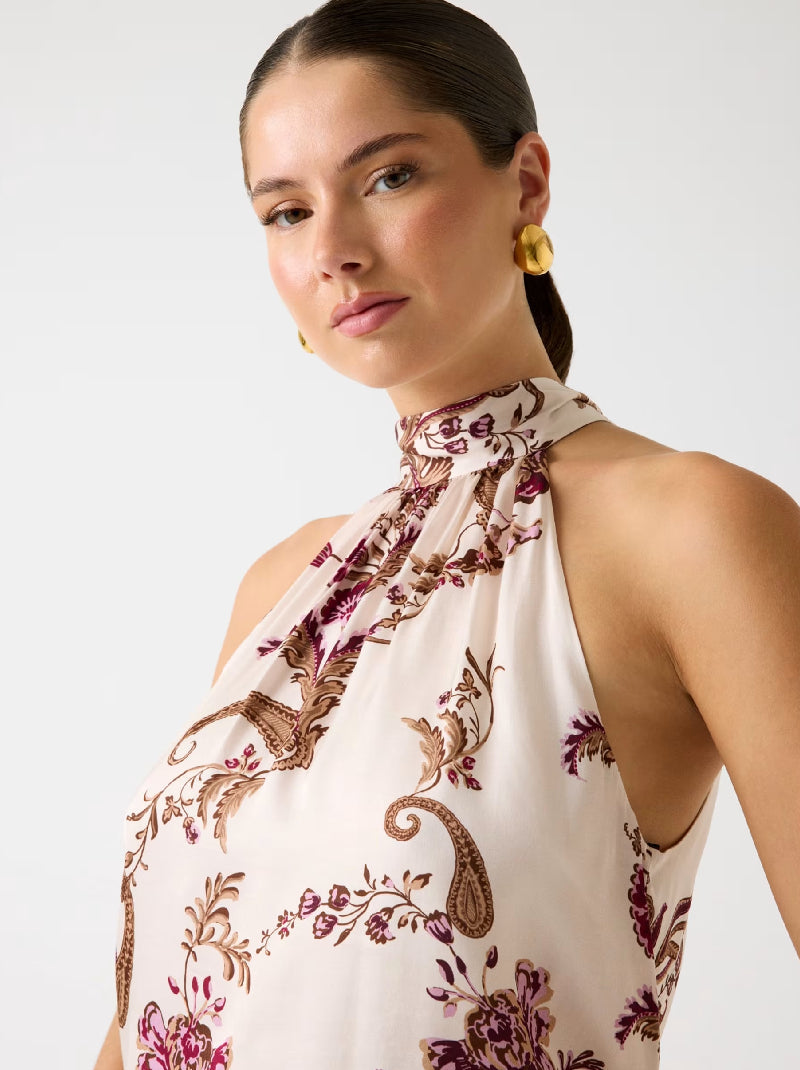 Elevate your wardrobe with this halter top from Marcian by GUESS in a soft beige hue. The halter neckline ties at the back to accentuate the shoulders, while the flowing hem adds effortless elegance and movement. Perfect for days when you want to shine, whether it’s a relaxed outing or a memorable evening event.