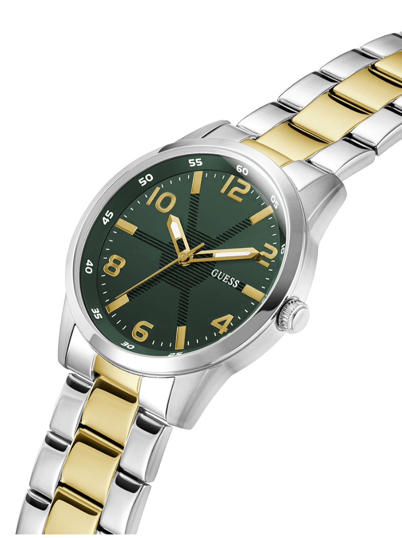 Embrace an elegance sense of style with this world class selection of luxury timepiece from GUESS model GW0804G4 Engineered with a refined Analog movement and featured a classic Analog movement and featured a classic Recycled Steel SILVER TONE 42 mm Completing a splendid design by housing a Recycled Steel strap to magnify the finished edit.