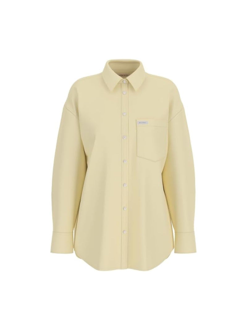 Add a casual yet polished touch to your wardrobe with this oversized long-sleeve shirt by GUESS. Designed with a relaxed silhouette, this shirt features a full button-down front, chest pocket with logo detail, and a soft cotton-blend finish for comfortable all-day wear. Its structured collar and long sleeves with button cuffs give it a timeless appeal, perfect for layering over a tank or wearing tucked into jeans. A versatile essential that transitions effortlessly from laid-back weekends to smart-casual looks.
