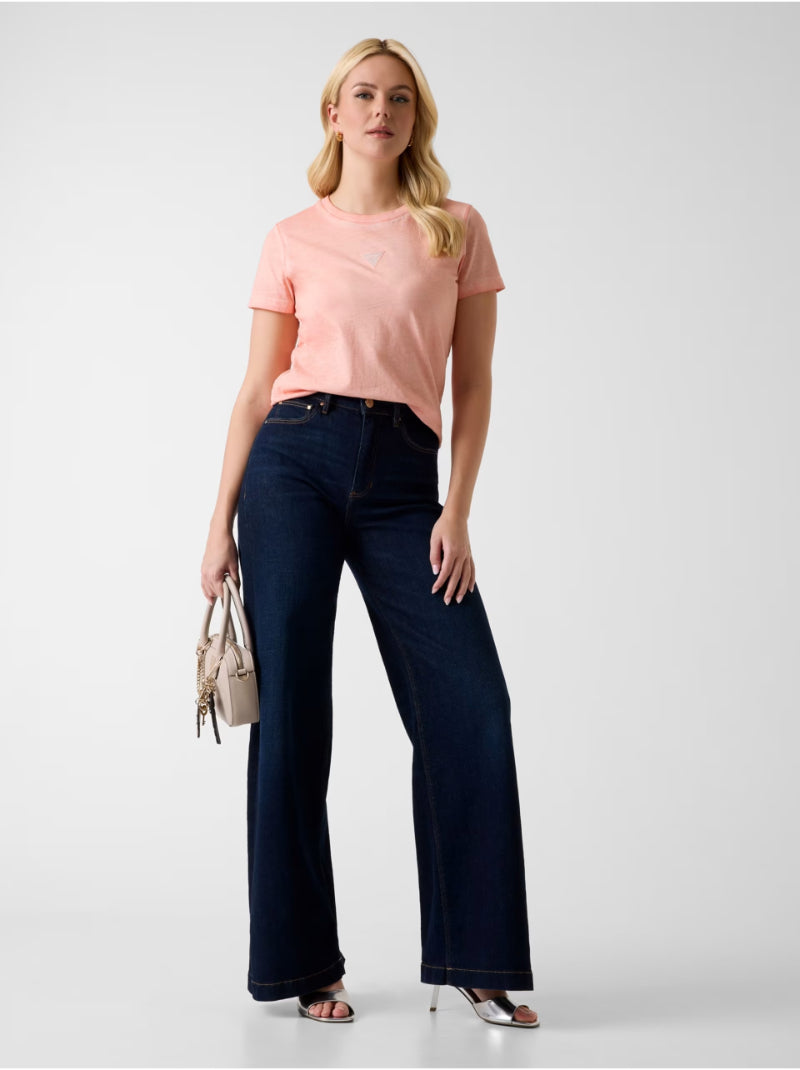 This rhinestone T-shirt from GUESS blends effortless simplicity with a touch of shine, featuring a flattering fit and classic crew neckline. The signature crystal-embellished logo adds a refined sparkle, while the soft, breathable fabric ensures all-day comfort, making it a versatile piece for everyday styling with a modern edge.