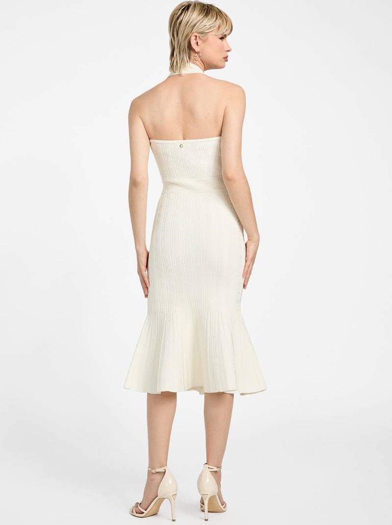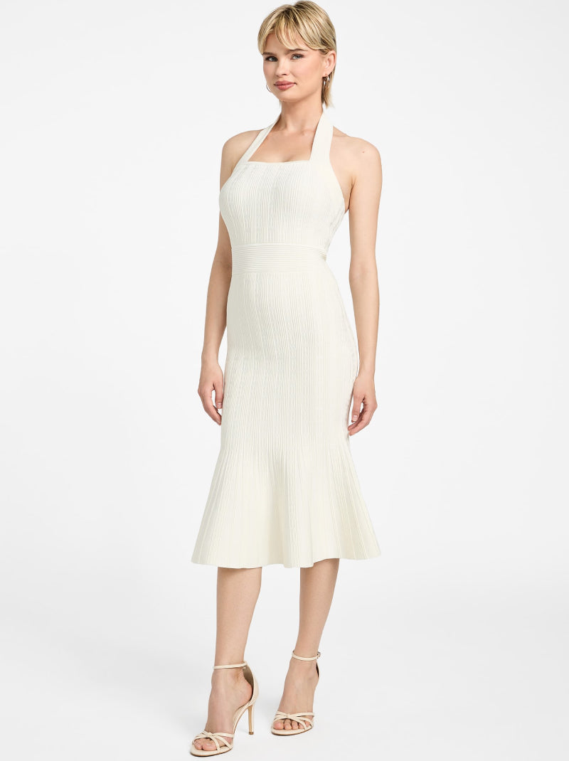The Sofie Halter Dress from GUESS is your go-to for sleek sophistication. Designed with a halter neckline and figure-hugging silhouette, this midi dress enhances your curves while offering timeless elegance. The open-back detail adds a hint of allure, making it a stunning choice for evening events, cocktail parties, or special nights out. Its minimalist style allows you to dress it up with statement accessories or keep it chic and simple.