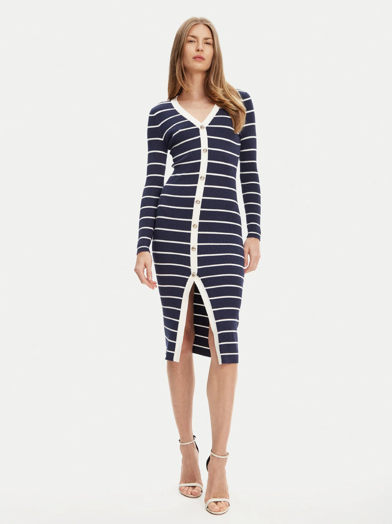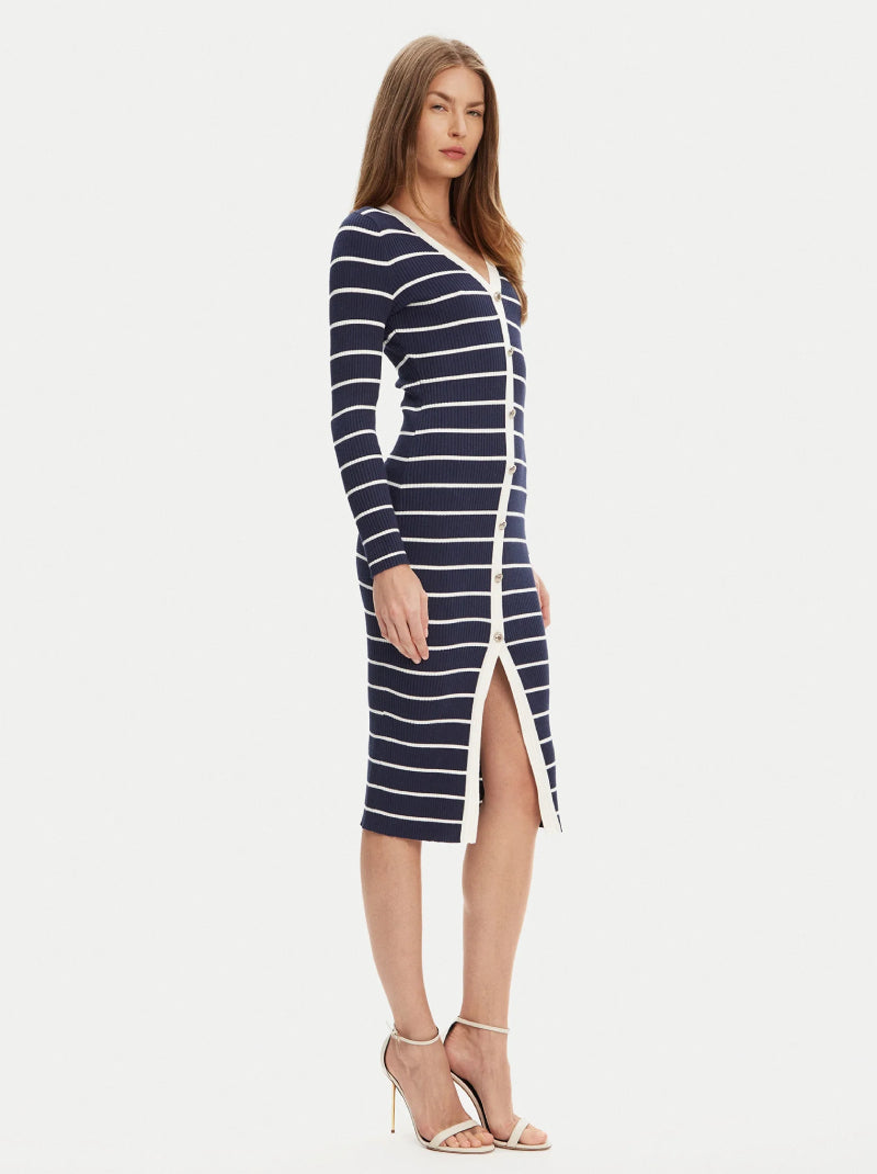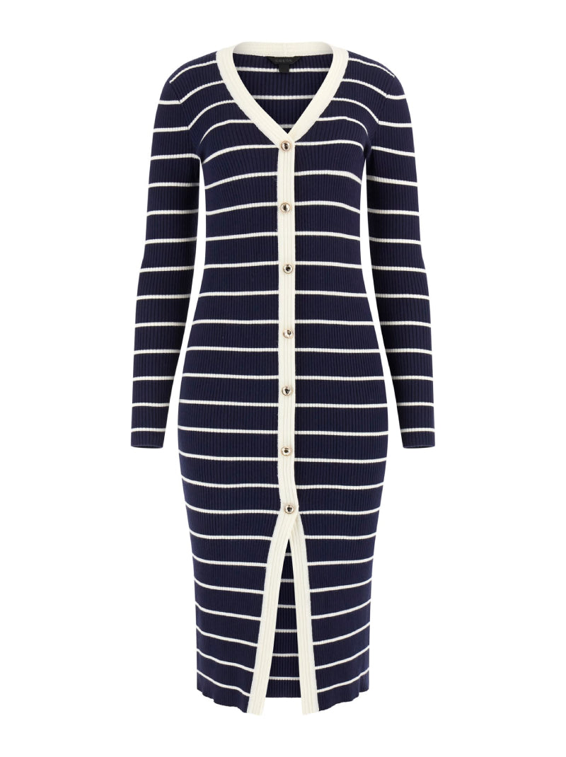 Embrace effortless sophistication with this sleeveless knit dress by GUESS. Designed in a slim fit silhouette, the ribbed texture contours the body beautifully, while the button-down front and scoop neckline add a touch of vintage charm. Perfect for both day and evening outings, this versatile piece is easy to dress up with heels or down with sneakers. A timeless style with modern edge.