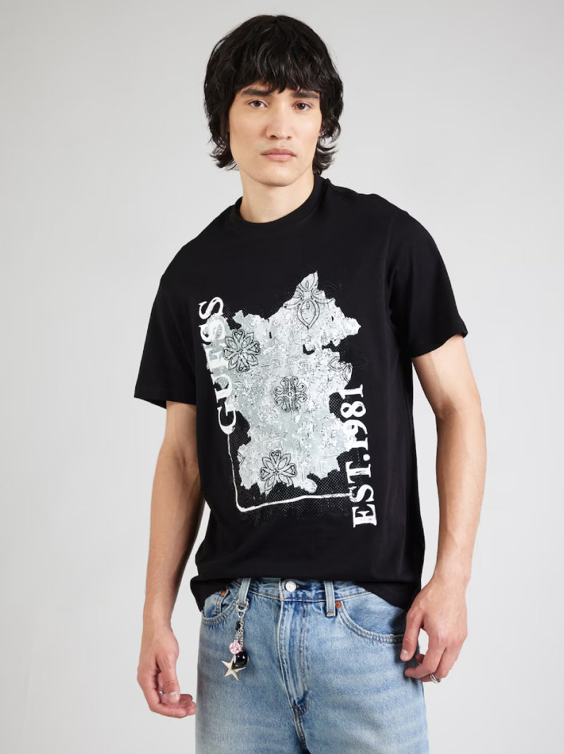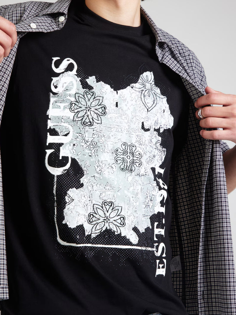 ● Artistic front graphic print with GUESS logo and "EST. 1981" lettering