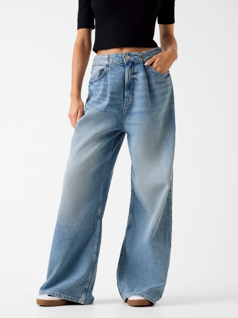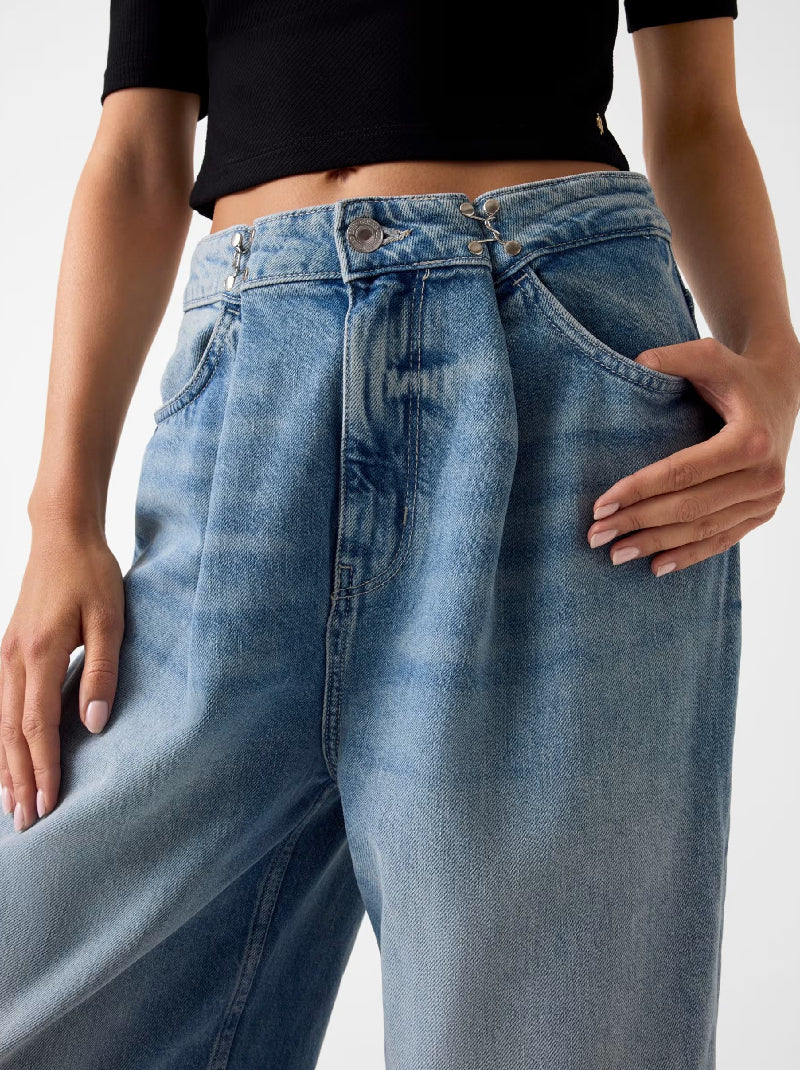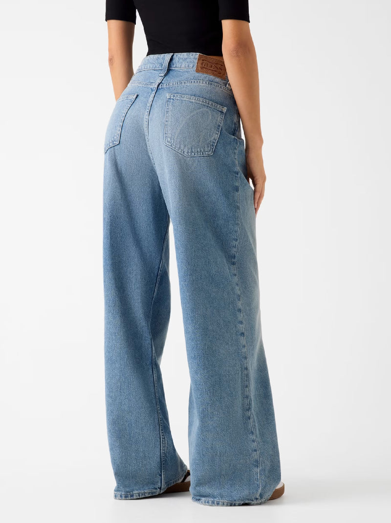 The GUESS Wide-Leg Relaxed Jeans offer effortless elegance with a high waist and soft, flowing silhouette. Crafted from lightweight denim, they bring a refined touch to everyday casual style.