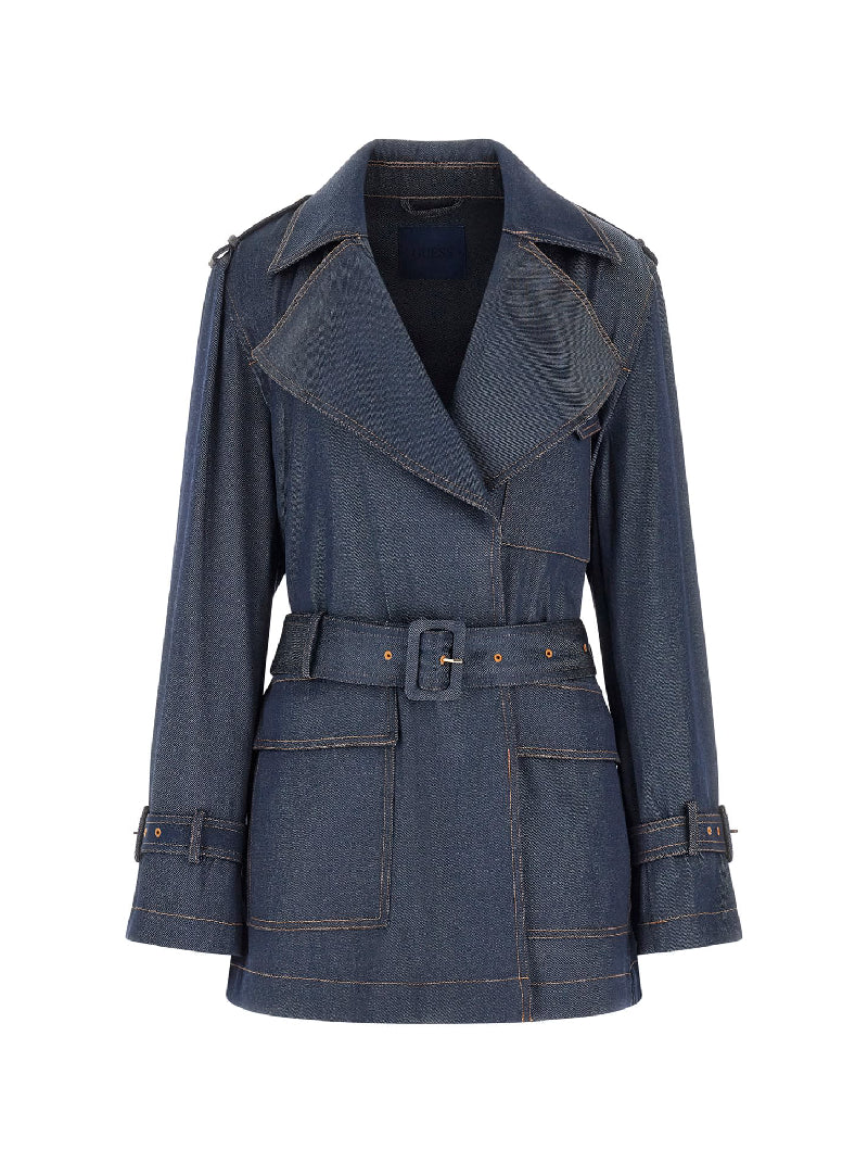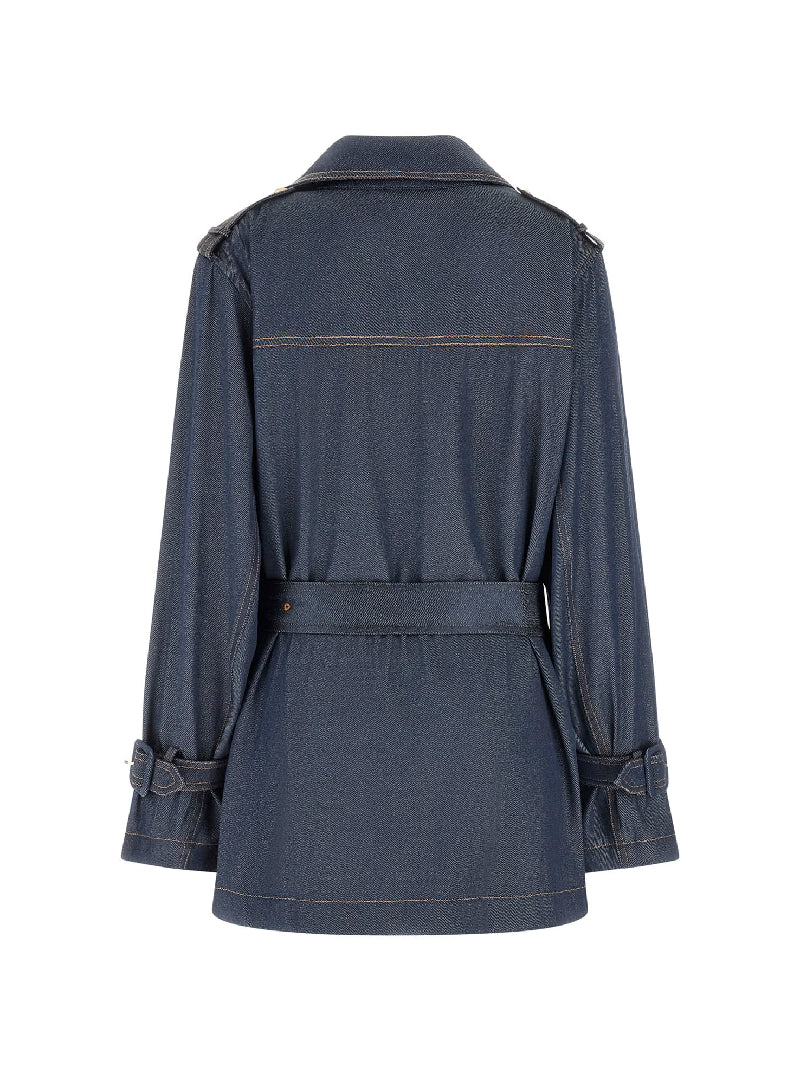 เสื้อแจ๊คเก็ตผู้หญิง Belted Denim Trench Jacket