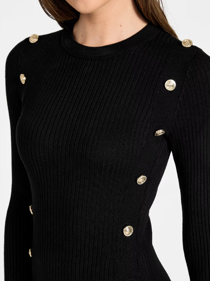 เติมเสน่ห์ให้ลุคของคุณด้วย เดรส Buttons Detail Midi Dress สีดำจาก GUESS ที่มาพร้อมดีไซน์เรียบหรูและรายละเอียดสุดประณีต ตัดเย็บจากผ้าวิสโคสผสมเนื้อนุ่มเข้ารูปทรง พร้อมแขนยาวและคอเสื้อทรงโค้งที่ช่วยขับสัดส่วนอย่างลงตัว ประดับด้วยกระดุมจิวเวลเพิ่มความพรีเมียม เหมาะสำหรับทั้งวันสบาย ๆ และงานกลางคืน แมตช์กับรองเท้าส้นสูงหรือบูทเพื่อสร้างลุคที่ดูสง่างามและร่วมสมัย.