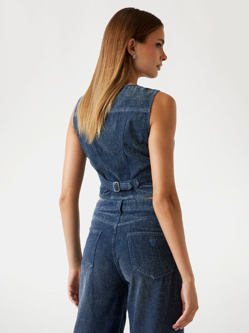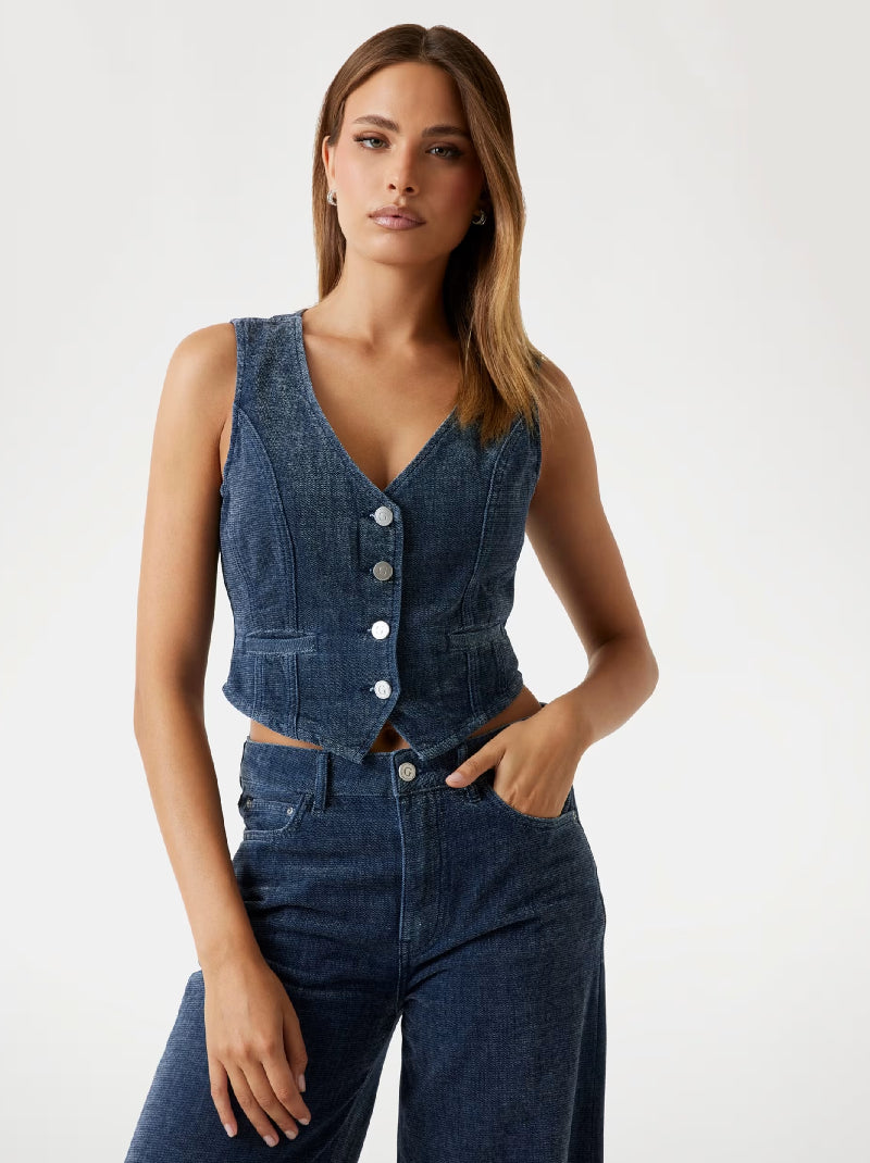 เติมลุคให้ดูทันสมัยและเฉียบคมกับเวสต์ยีนส์คัตติ้งสั้นจาก GUESS โดดเด่นด้วยดีไซน์เฉียบและผ้าฝ้ายผสมที่ตัดเย็บอย่างประณีตในเฉดสีน้ำเงินเข้ม คอวีและกระดุมด้านหน้าช่วยสร้างสไตล์ที่มีคลาส ส่วนสายรัดด้านหลังช่วยให้คุณปรับทรวดทรงได้ตามใจ เพื่อความโค้งเว้าเซ็กซี่ในแบบที่คุณเลือก เมื่อสวมคู่กับเสื้อยืดเรียบ ๆ หรือกางเกงเอวสูง ก็ได้ลุคสุดชิคที่ไม่ต้องพยายามให้มาก