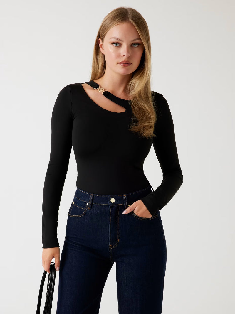 เสื้อผู้หญิง Cut-Out Buckle Top