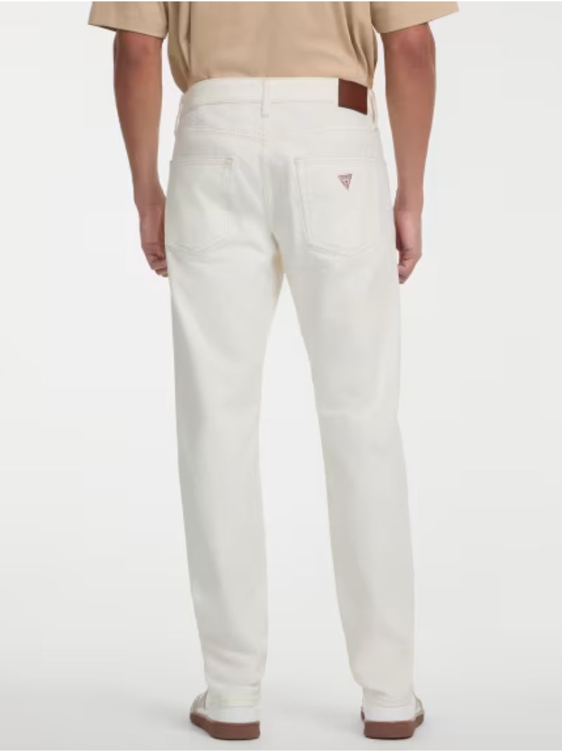 เติมเต็มคอลเลกชันยีนส์ของคุณด้วย GUESS Eco G14 Slim Jeans สีขาวสะอาด ที่ตัดเย็บจากผ้าเดนิมบูลล์คุณภาพสูง มาพร้อมทรงสลิมและขาตรง ให้ลุคทันสมัยอย่างลงตัว เอวระดับกลางนั่งพอดีที่สะโพก พร้อมดีไซน์กระเป๋า 5 ช่องแบบคลาสสิก และการปิดซิปพร้อมกระดุม เพิ่มความเรียบหรู เหมาะสำหรับการแต่งตัวได้หลากหลายสไตล์ ตั้งแต่ลำลองไปจนถึงกึ่งทางการ