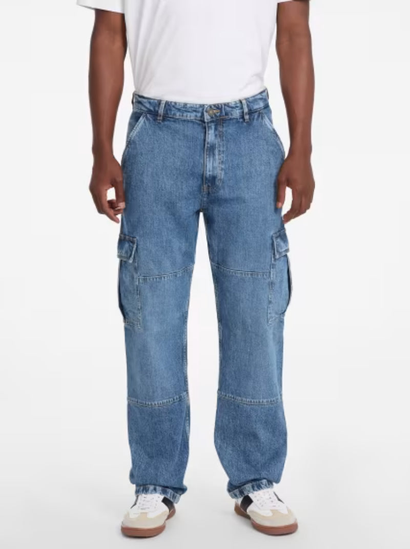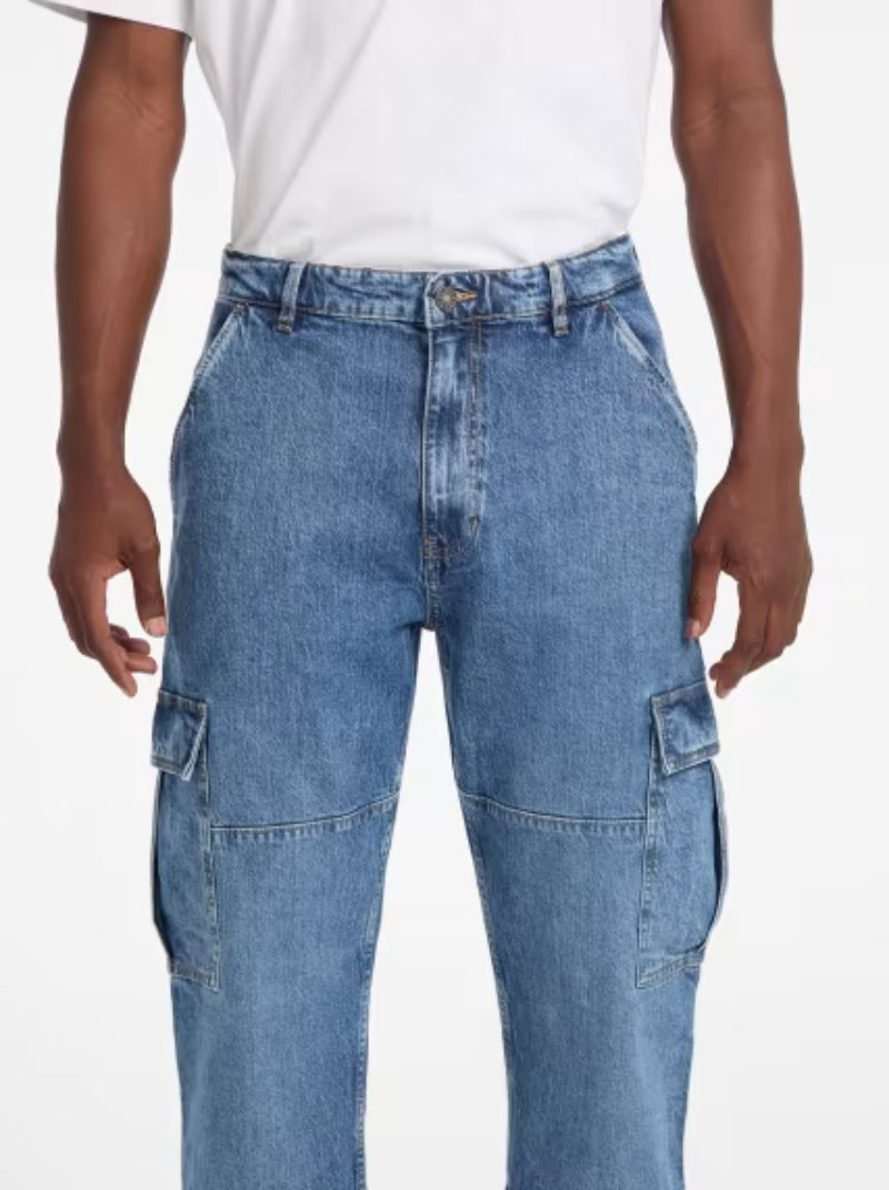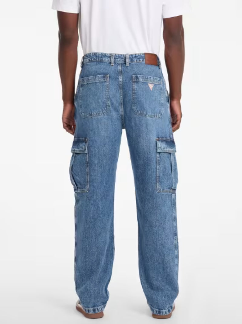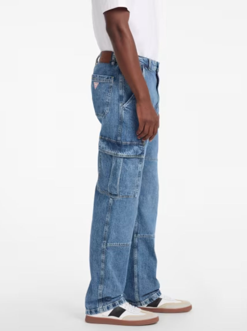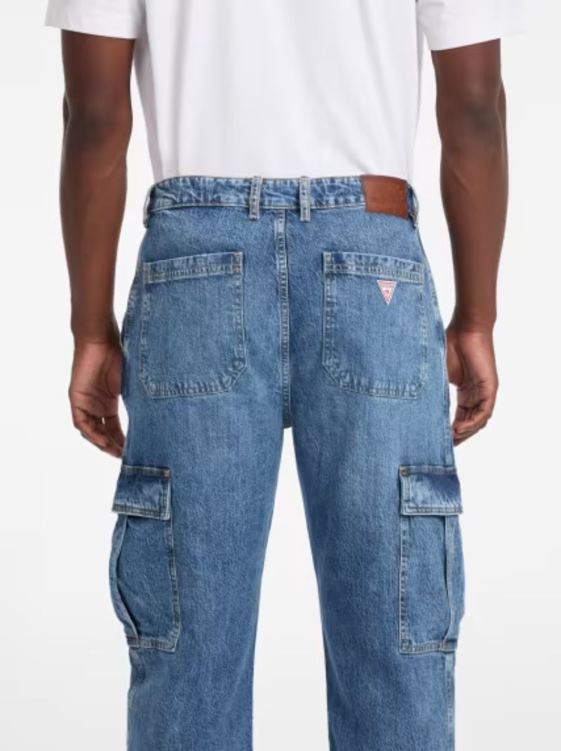 ยีนส์ Eco G17 Cargo Jeans จาก GUESS ผสานดีไซน์สไตล์ยูทิลิทาเรียนเข้ากับความสบายในทุกวัน ผลิตจากผ้ายีนส์ยืดสีเข้ม ทรงหลวมใส่สบาย พร้อมเอวระดับกลางที่นั่งพอดีสะโพก กระเป๋าด้านข้างแบบคาร์โก้เพิ่มความเท่ พร้อมซิปและกระดุมปิดเพื่อความมั่นใจในการสวมใส่