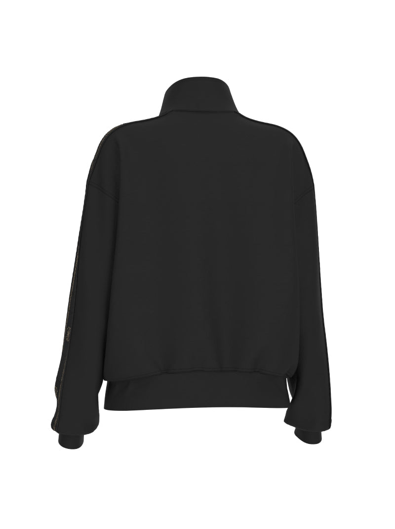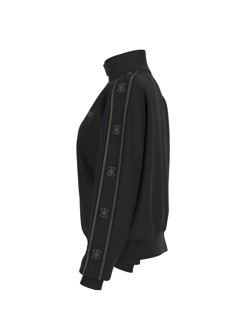เติมเสน่ห์ให้ลุคเรียบหรูด้วยเสื้อสเวตเชิ้ตซิปหน้ารุ่น Eco Octavia จาก GUESS สีดำ ที่ถูกตัดเย็บจากผ้าวูลเบลนด์แบบ brushed terry ให้สัมผัสนุ่มสบาย รอบคอสูง ซิปเต็มตัว และแขนยาวช่วยให้สวมใส่ได้ทั้งวันอย่างมั่นใจ โลโก้ตกแต่งด้วยคริสตัลที่ด้านหน้าและเรียงลงตามแขน เพิ่มประกายเบา ๆ ให้ชิ้นนี้โดดเด่นไม่ซ้ำใคร พร้อมขอบปลายแขนและชายเสื้อแบบริบที่คงทรงและเน้นสัดส่วนอย่างมีสไตล์