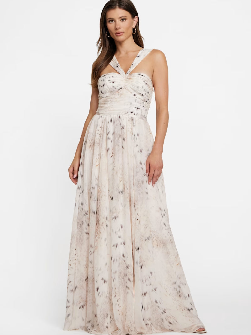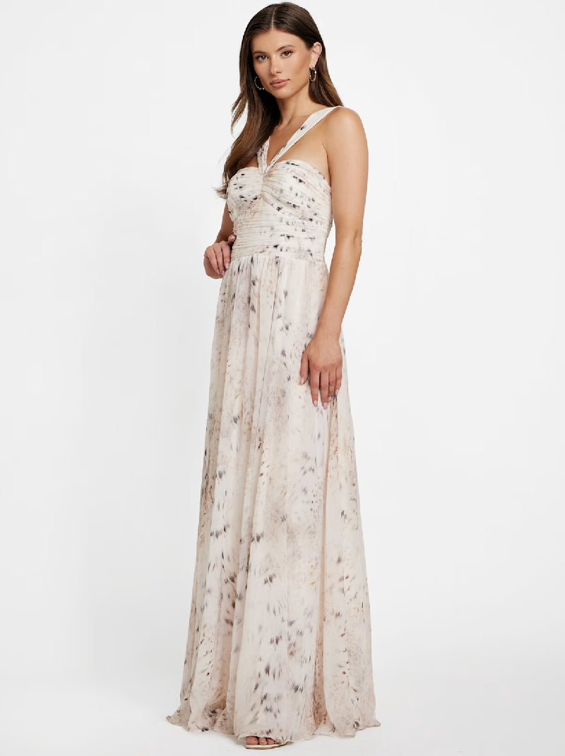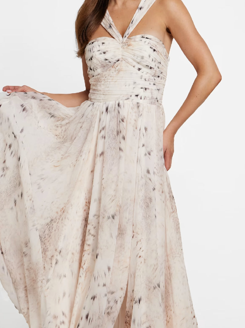 ชุดเดรส Marciano Eco Verity Bustier Maxi Dress สีขาว ดีไซน์หรูหราที่ผสมผสานความเซ็กซี่และความสง่างามอย่างลงตัว ด้วยผ้าพิมพ์ลายดอกไม้ที่ละเอียดและสวยงาม คอเสื้อแบบผูกโบว์ที่ด้านหลังเพิ่มความโรแมนติกและความอ่อนหวานให้กับลุคของคุณ ส่วนกระโปรงยาวสไตล์แม็กซี่ที่มีการระบายช่วยเพิ่มความพลิ้วไหวและความเป็นผู้หญิง ด้านหลังของชุดมีดีเทลเปิดหลังที่เพิ่มความเซ็กซี่และความโดดเด่น เหมาะสำหรับงานกลางคืน ปาร์ตี้ หรือโอกาสพิเศษที่ต้องการความโดดเด่นและมีสไตล์