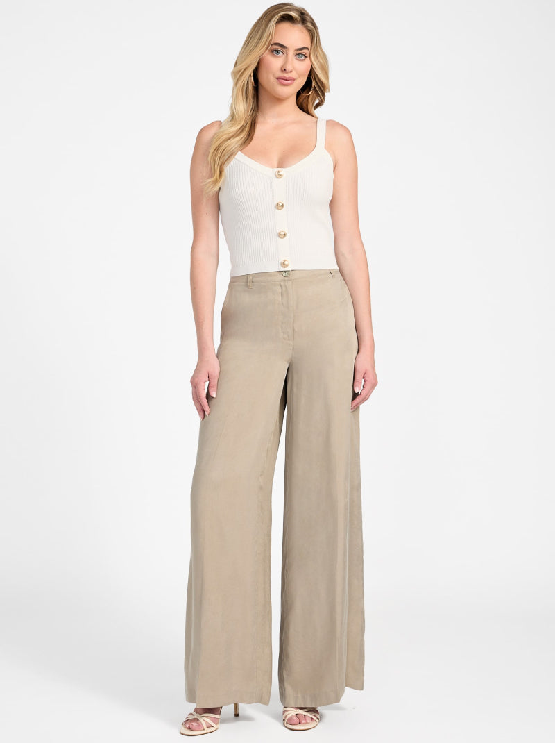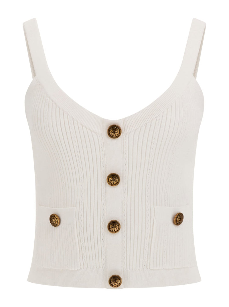 เติมเต็มตู้เสื้อผ้าด้วย เสื้อครอปถัก Emmie Sweater Tank Top จาก GUESS ดีไซน์ทันสมัยที่ผสมผสานความอบอุ่นและความละเอียดอ่อนในแบบสไตล์มินิมอล ตัวเสื้อถักลายริบพร้อมดีเทล pointelle ที่ช่วยให้ลุคผสมผสานความเรียบหรูและระบายอากาศได้ดี ตัดเย็บทรงเข้ารูปด้วยคอเว้าแบบ scoop และสายไหล่คงรูป ทำให้ลุคเรียบร้อยและทันสมัย เพิ่มด้านหน้าด้วยดีไซน์กระดุมเล็กและกระเป๋าเสริมดีเทลแบบเก๋ ๆ พร้อมผูกโบว์หลังให้ลุคปรับได้ตามสรีระชายเสื้อทรงริบช่วยให้ทรงเรียบเนียบ สามารถใส่ซับในเสื้อเบลเซอร์ แมตช์กับยีนส์เอวสูง หรือใส่เดี่ยวในวันอากาศอบอุ่น ได้ลุคสบายๆ แต่ยังมีสไตล์เรียบหรูในทุกโอกาส