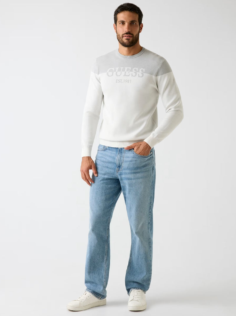 เสื้อสเวตเตอร์ผู้ชายจาก GUESS ที่มอบความคลาสสิกและทันสมัยในชิ้นเดียว ด้วยเนื้อผ้าผสมไลโอเซลคุณภาพสูงให้สัมผัสนุ่มสบายตลอดวัน พร้อมแขนยาวและคอกลมที่ดูสะอาดตา โลโก้ GUESS ด้านหน้าช่วยเพิ่มเอกลักษณ์ให้ทุกลุค ในเฉดสีออฟ-ไวท์ที่เข้ากับทุกสไตล์ เหมาะสำหรับใส่ลำลองหรือแต่งเป็นชั้นกลางในวันที่ต้องการความอบอุ่นและดูดีในเวลาเดียวกัน