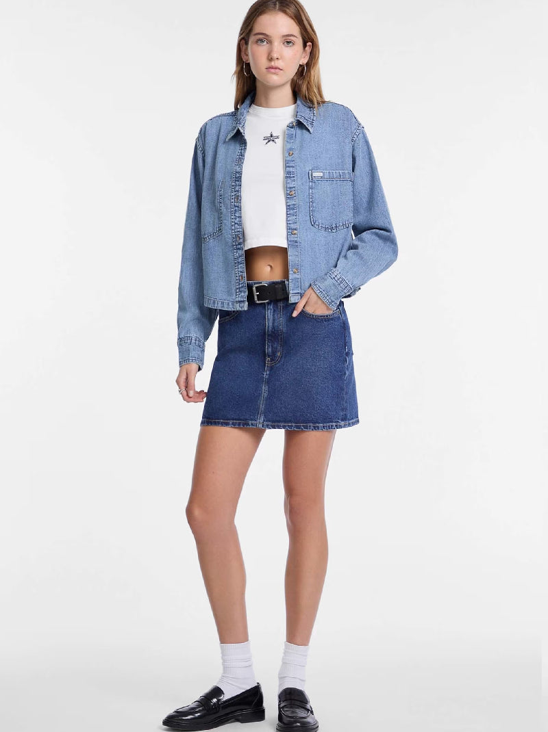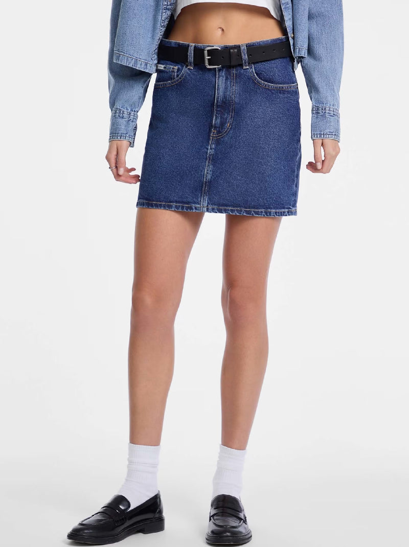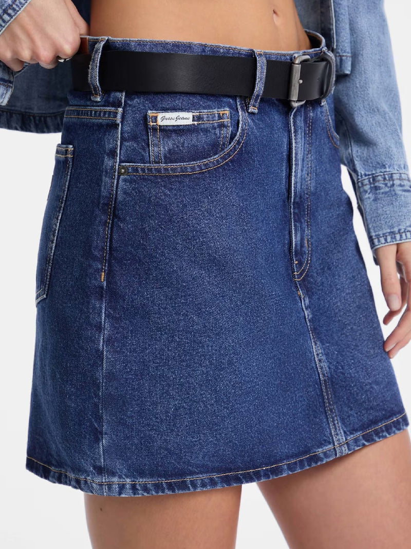 กระโปรงยีนส์มินิจาก GUESS ที่มาพร้อมดีไซน์เรียบหรูและทันสมัย ผลิตจากผ้ายีนส์ยืดเนื้อดี ให้สัมผัสนุ่มสบายและช่วยกระชับรูปร่างอย่างเป็นธรรมชาติ เฉดสีฟอกปานกลางเพิ่มลุควินเทจเบา ๆ ที่เข้ากับทุกสไตล์ ดีไซน์เอวสูงแบบทรงปกติช่วยเน้นสัดส่วนให้ดูสมส่วน พร้อมรายละเอียดกระเป๋า 5 ช่องสุดคลาสสิก และการปิดซิปพร้อมกระดุมด้านหน้า สวมใส่ง่าย เหมาะสำหรับมิกซ์แอนด์แมตช์กับเสื้อเชิ้ตหรือเสื้อยืดเพื่อเผยลุคแคชชวลสุดชิคในทุกวัน