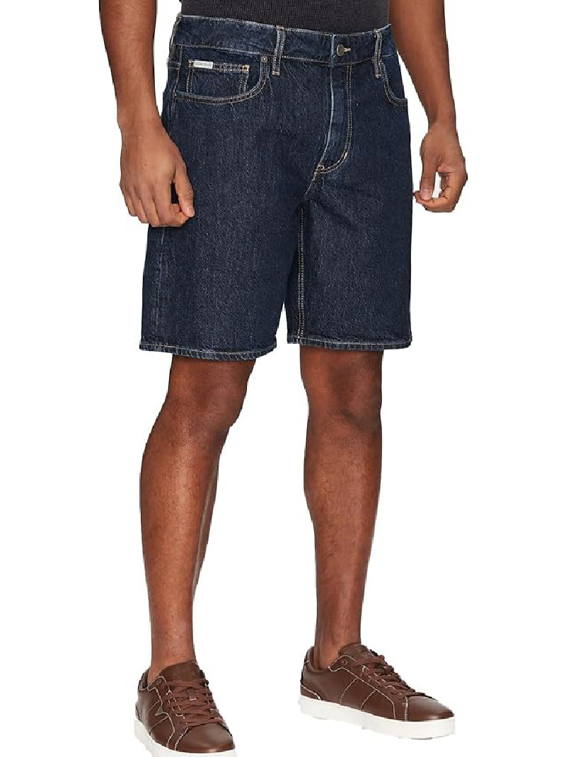 กางเกงยีนส์ขาสั้นผ้ายีนส์ยืดสีเข้ม มาพร้อมทรงปกติและเอวสูงปานกลางที่สวมใส่สบาย ดีไซน์คลาสสิกด้วยกระเป๋า 5 ช่อง พร้อมติดซิปและกระดุม เพิ่มความโดดเด่นด้วยโลโก้ปะที่ช่วยเสริมลุคให้ดูเท่และทันสมัย เหมาะสำหรับการมิกซ์แอนด์แมทช์ได้ในทุกโอกาส