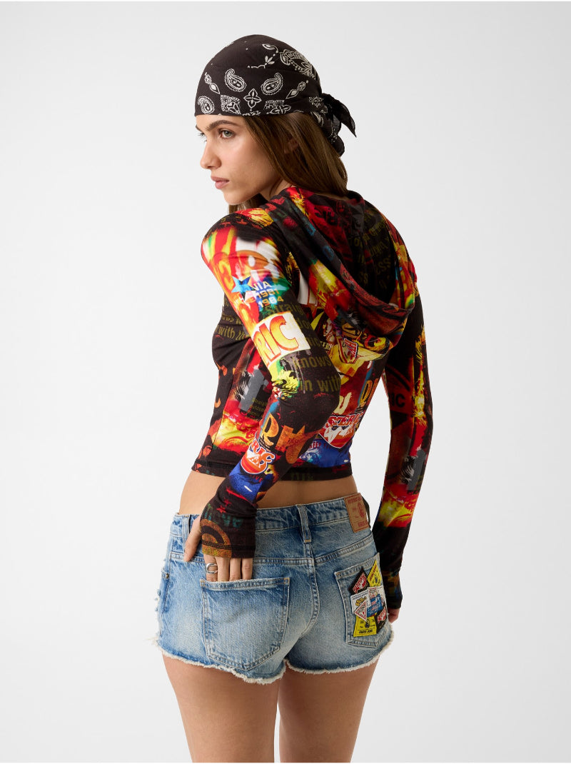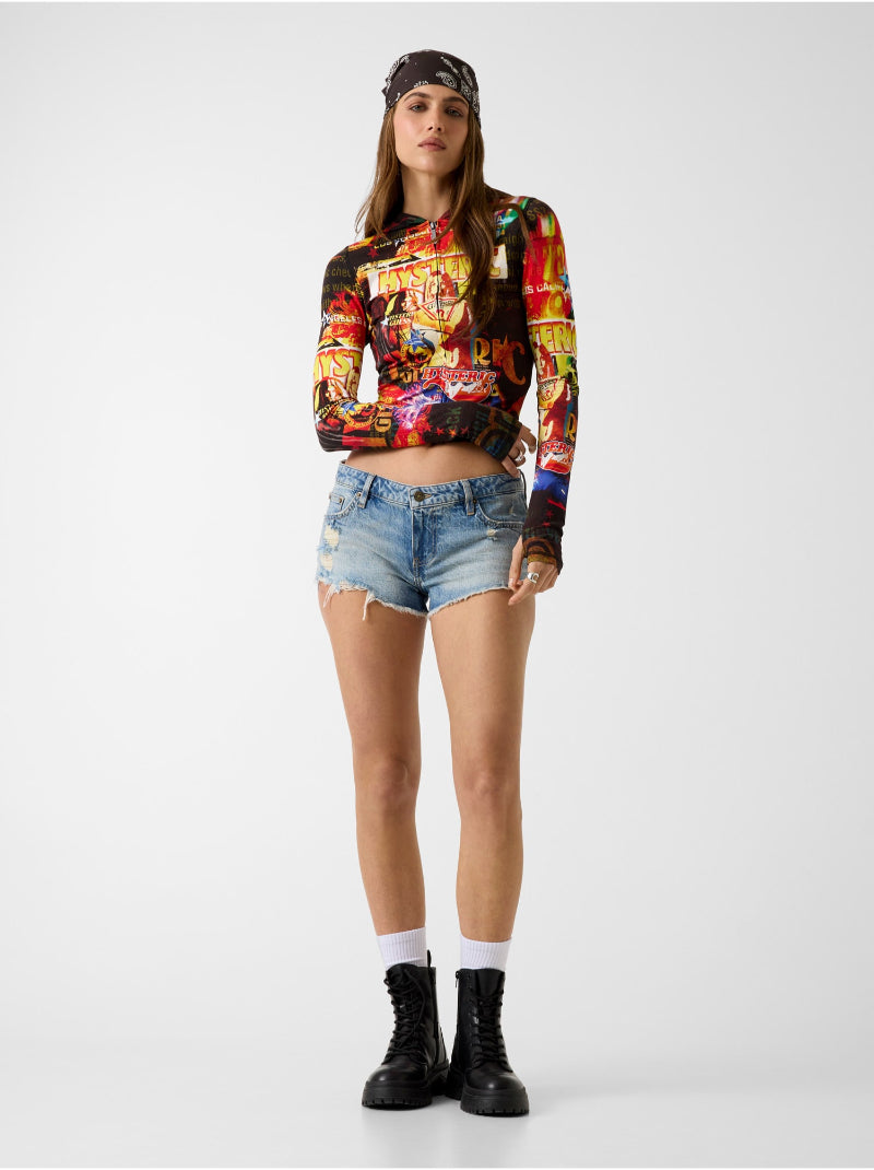 เสื้อครอปดีไซน์เข้ารูปที่ถ่ายทอดความเซ็กซี่แบบเรียบง่ายในสไตล์โมเดิร์น โดดเด่นด้วยลายพิมพ์โลโก้ทั่วทั้งตัว เพิ่มความมั่นใจในทุกการเคลื่อนไหว พร้อมเนื้อผ้ายืดหยุ่นที่สวมใส่สบาย เหมาะสำหรับลุคแคชชวลที่ต้องการความโดดเด่นอย่างมีสไตล์