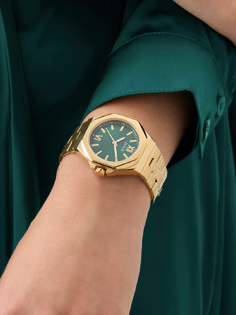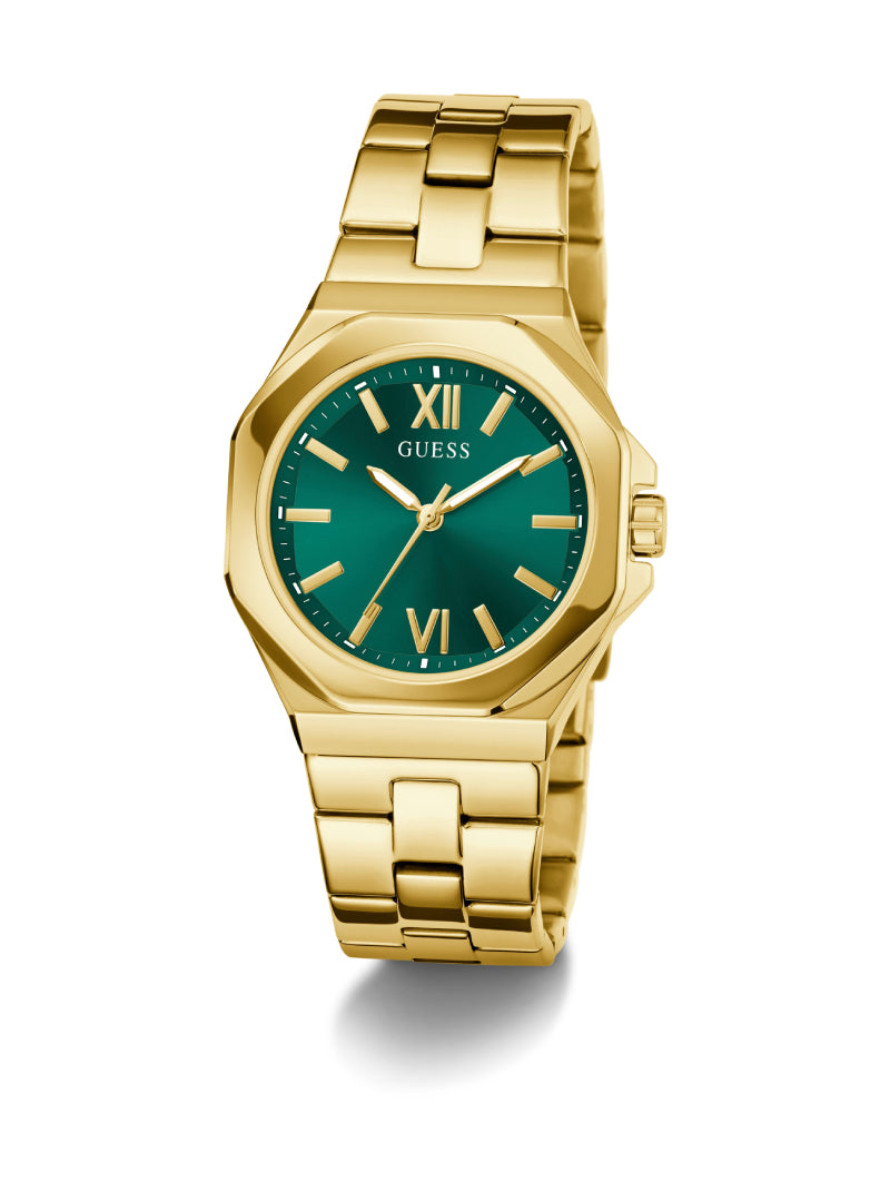 นาฬิกาข้อมือผู้หญิง Guess Ladies Gold-Tone And Green Analog Watch