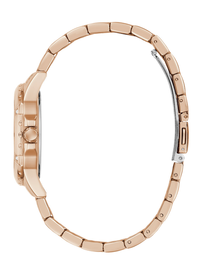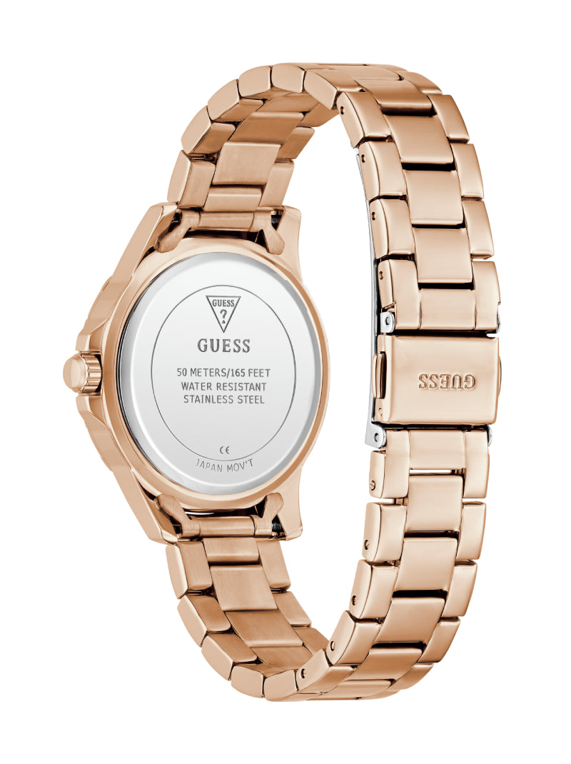 นาฬิกา GUESS โรสโกลด์ ถ่ายทอดความหรูหราสง่างามในแบบผู้หญิงได้อย่างชัดเจน ตัวเรือนและสายสแตนเลสโรสโกลด์มันวาวสะดุดตา จับคู่กับหน้าปัดสีขาวเรียบหรู เพิ่มประกายความงามด้วยคริสตัลรอบขอบตัวเรือน ดีไซน์นี้เหมาะทั้งใส่กับชุดทำงานเพื่อเสริมภาพลักษณ์มืออาชีพ หรือใส่ในงานกลางคืนเพื่อเพิ่มความโดดเด่น เป็นเครื่องประดับที่สะท้อนทั้งความมั่นใจและสไตล์ได้อย่างลงตัว