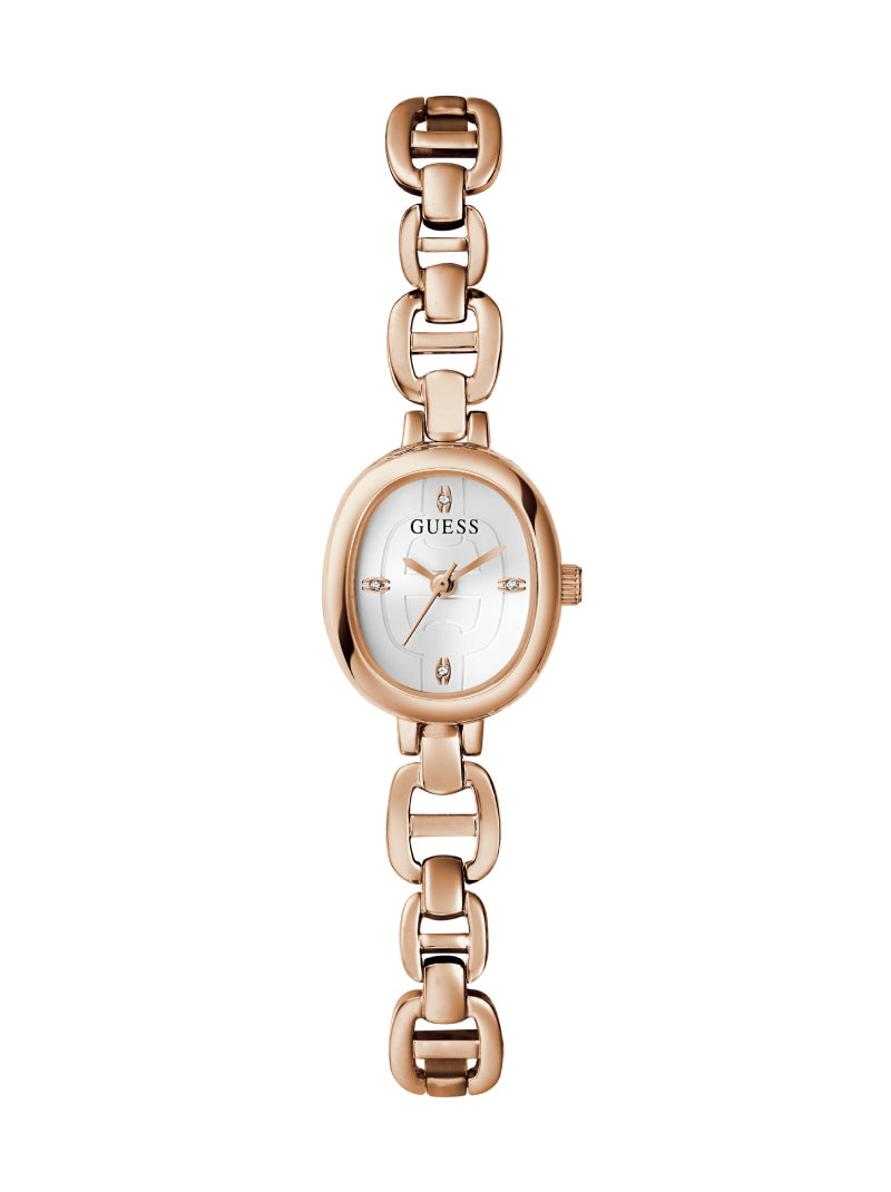 นาฬิกา GUESS รุ่นสายโรสโกลด์ หน้าปัดสีขาว สื่อถึงความหรูหราที่เรียบง่าย ข้อต่อสายโลหะบางดีไซน์อ่อนช้อยโอบรับข้อมือได้อย่างพอดี ตกแต่งด้วยดีเทลโลโก้ GUESS เพิ่มเอกลักษณ์โดยไม่ทำให้ดีไซน์ดูหนักเกินไป สามารถใส่ได้ทั้งวันทำงานจนถึงวันหยุดสุดสัปดาห์